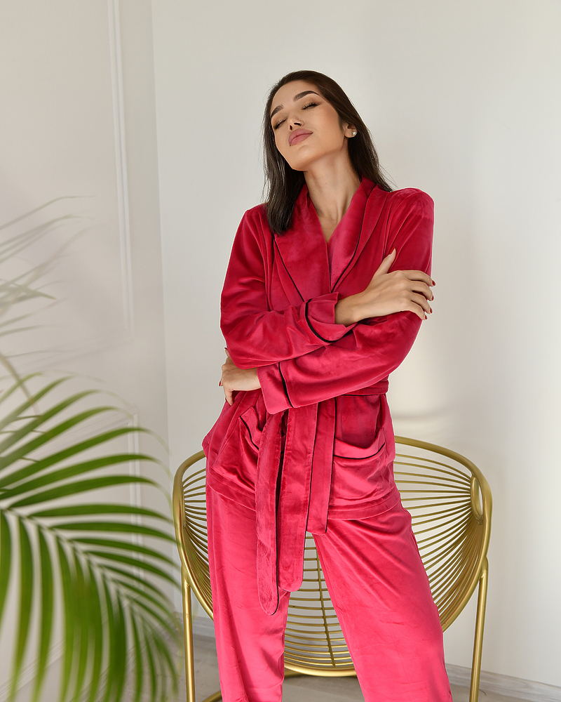 Піжама велюр Eva на запах Малиновий