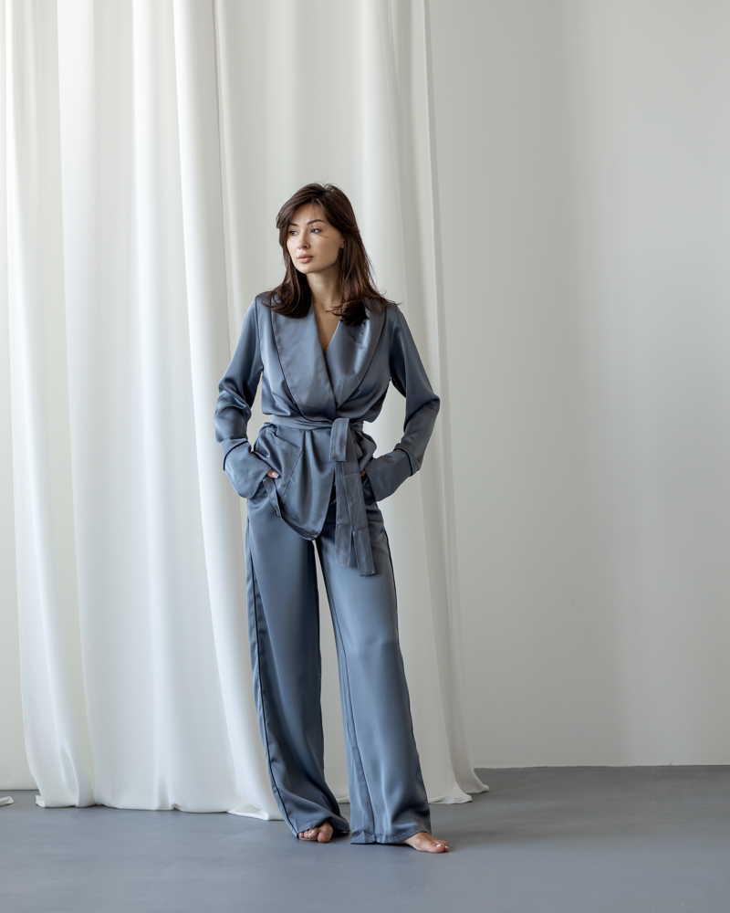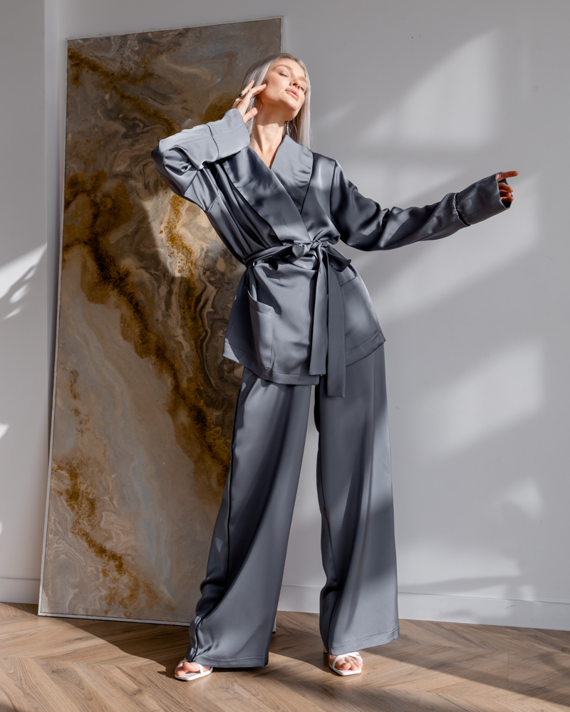 Елегантний та стильний костюм в піжамному стилі із королівського шовку.