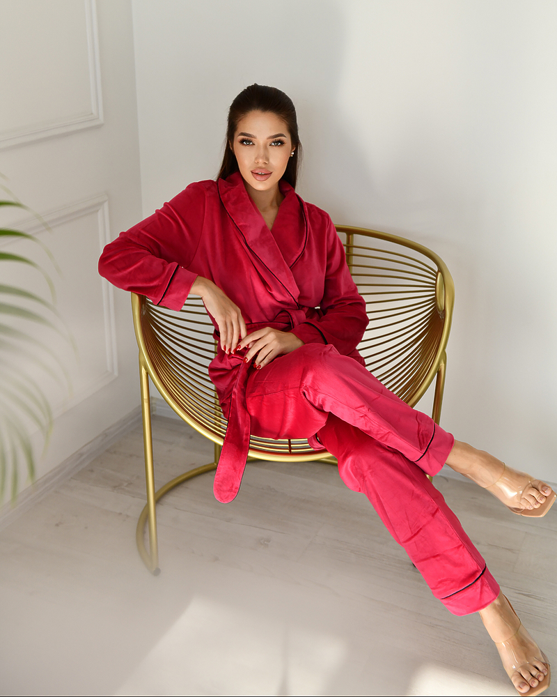 Піжама велюр Eva на запах Малиновий : Розмір - S (арт. 2901)