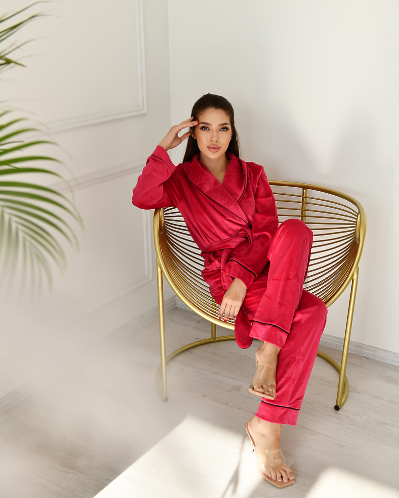 Піжама велюр Eva на запах Малиновий