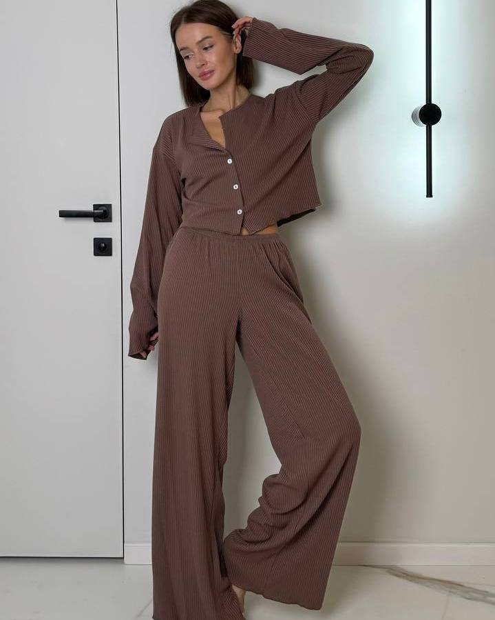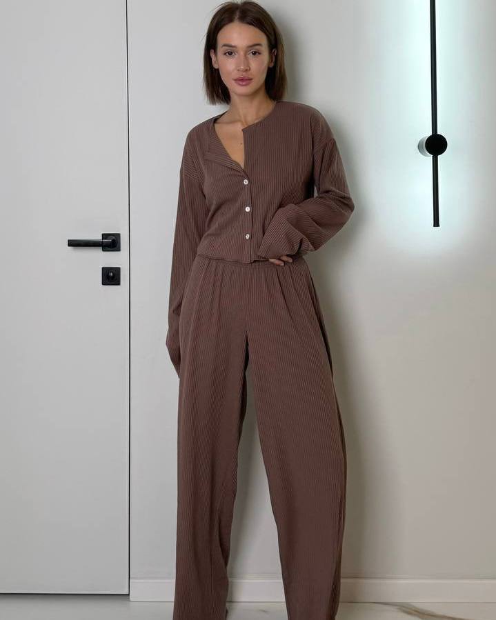 Комплект: кофта на ґудзиках та вільного крою штани на резинці.