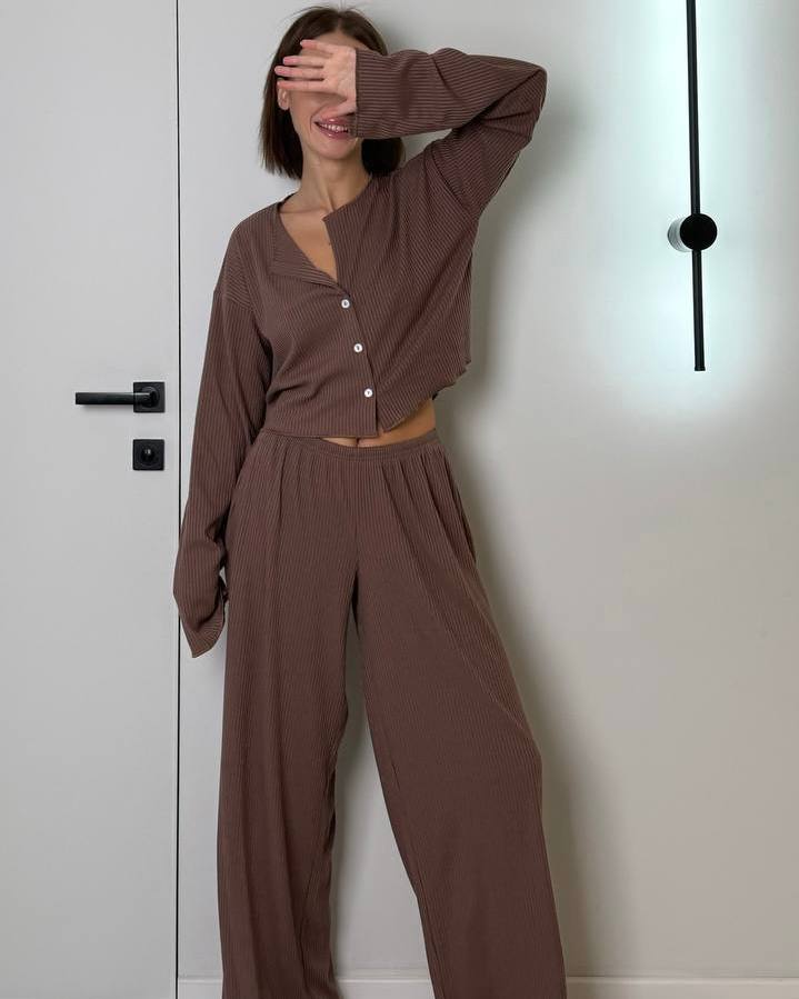 Неймовірно зручна жіноча піжама із трикотажу рубчик.