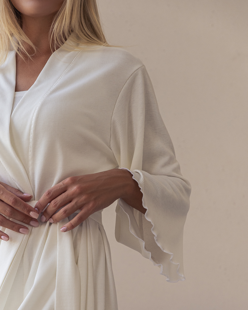 Піжамний костюм трійка з рубчика Dana (халат+топ+шорти) Білий
