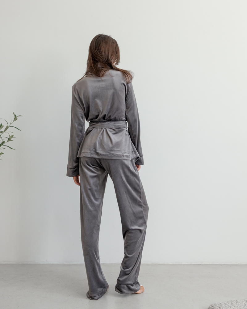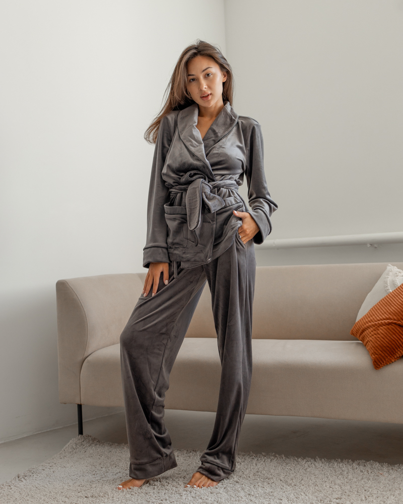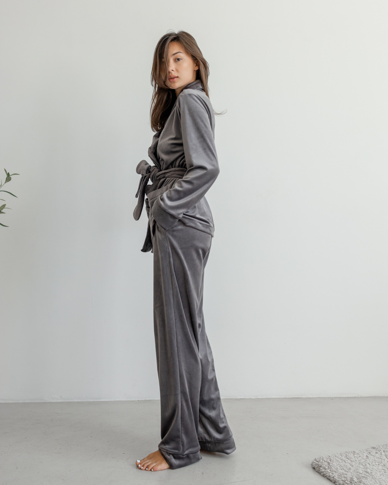 Піжама велюр Eva на запах Сірий