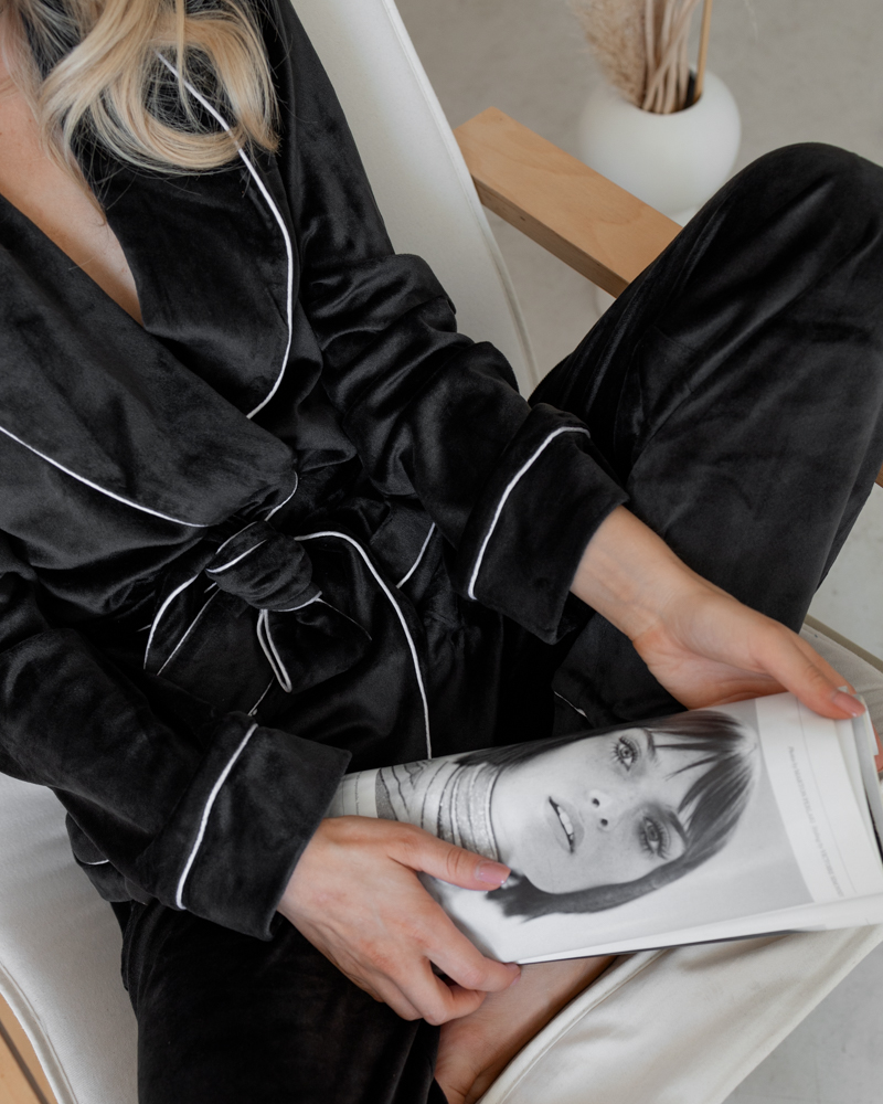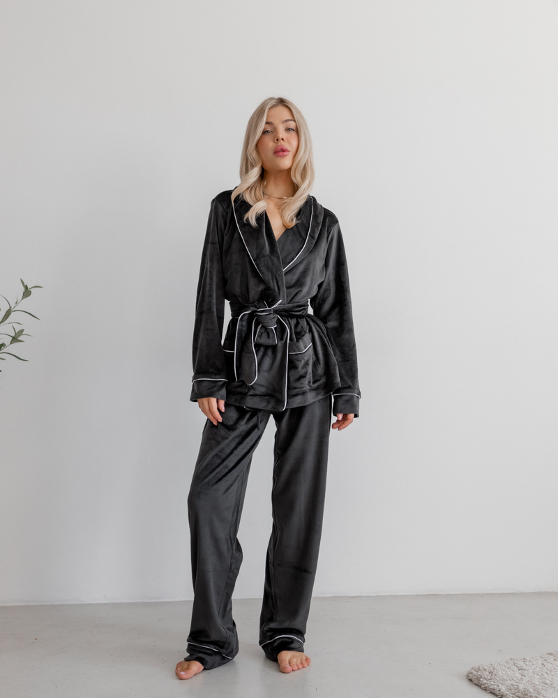Піжама на запах велюр Eva Чорний
