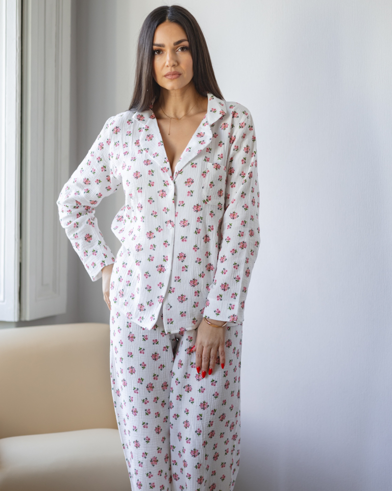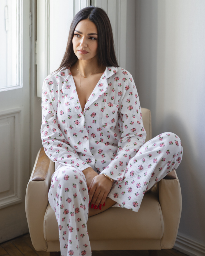 Жіноча піжама "Siena" тканина муслін Червоні квіти