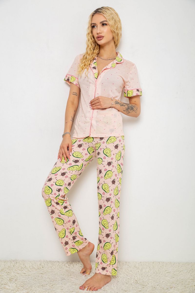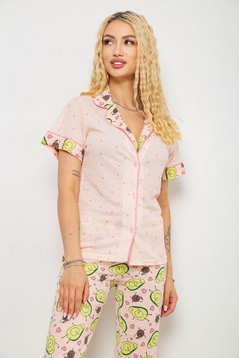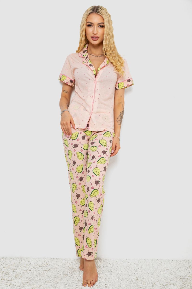 Жіноча піжама з принтом, колір персиковий, 243R7091
