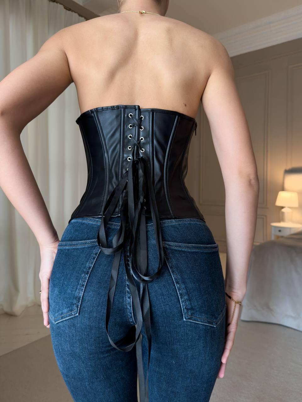 Щільна еко-шкіра тримає форму та красиво моделює талію