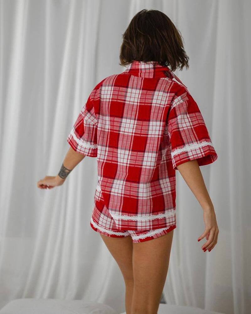 Жіночий костюм в піжамному стилі "Judy" бавовна преміум якості + італійське мереживо Червоний