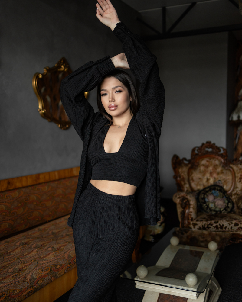 Жіночий костюм-трійка "Dominica" (сорочка+топ+штани) віскоза жатка Чорний : Розмір - S (арт. 4281)