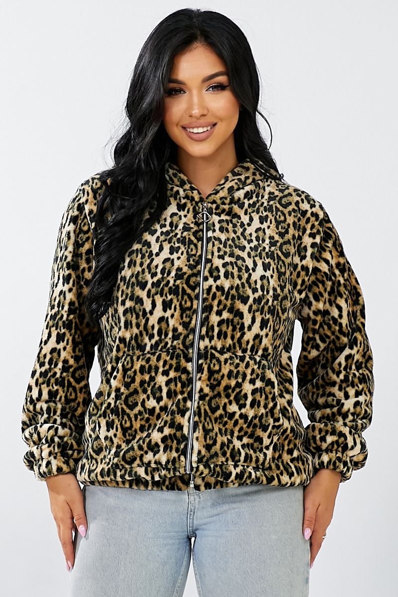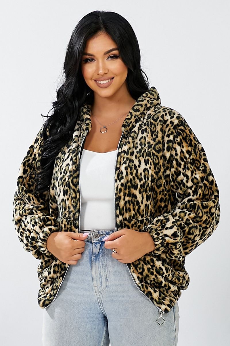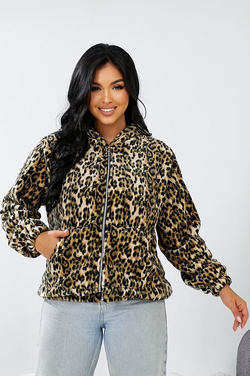 Бомбер жіночий з капюшоном, колір леопардовий, 257R48