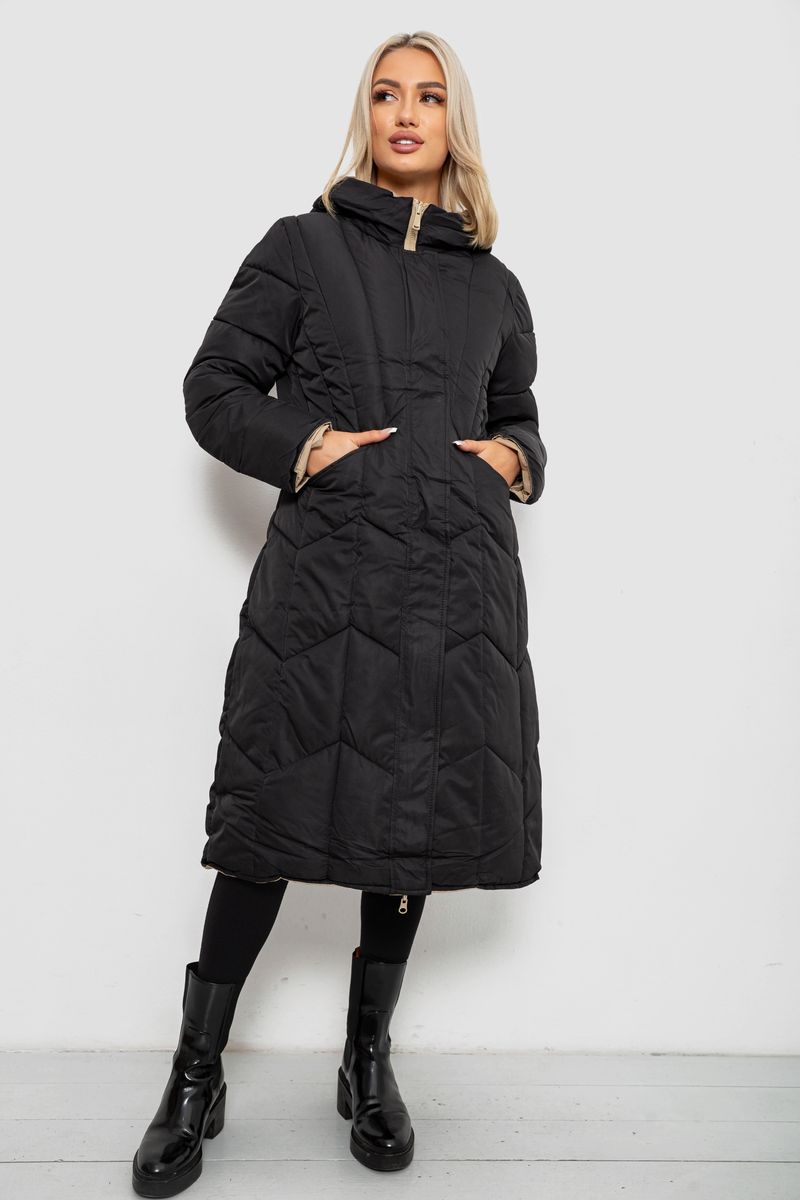 Куртка жіноча двостороння зимова, колір чорний, 244R24115