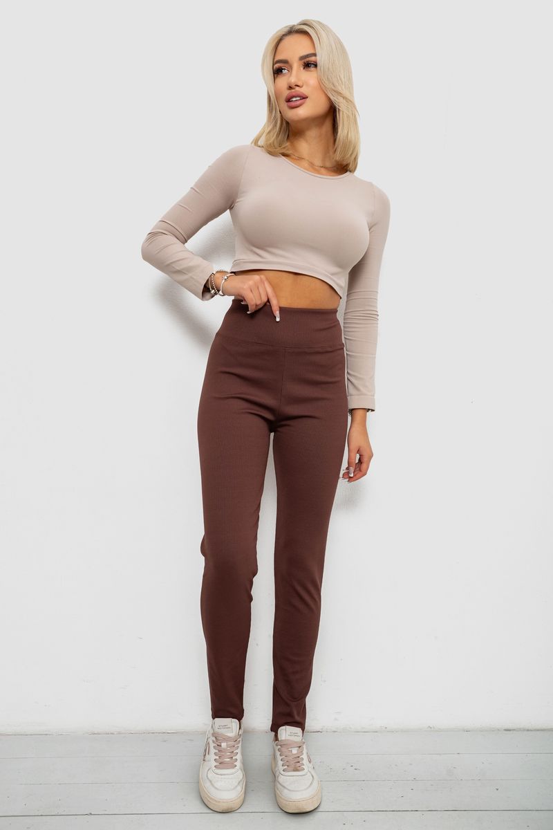 Лосини в рубчик на флісі, колір шоколадний, 244R1709