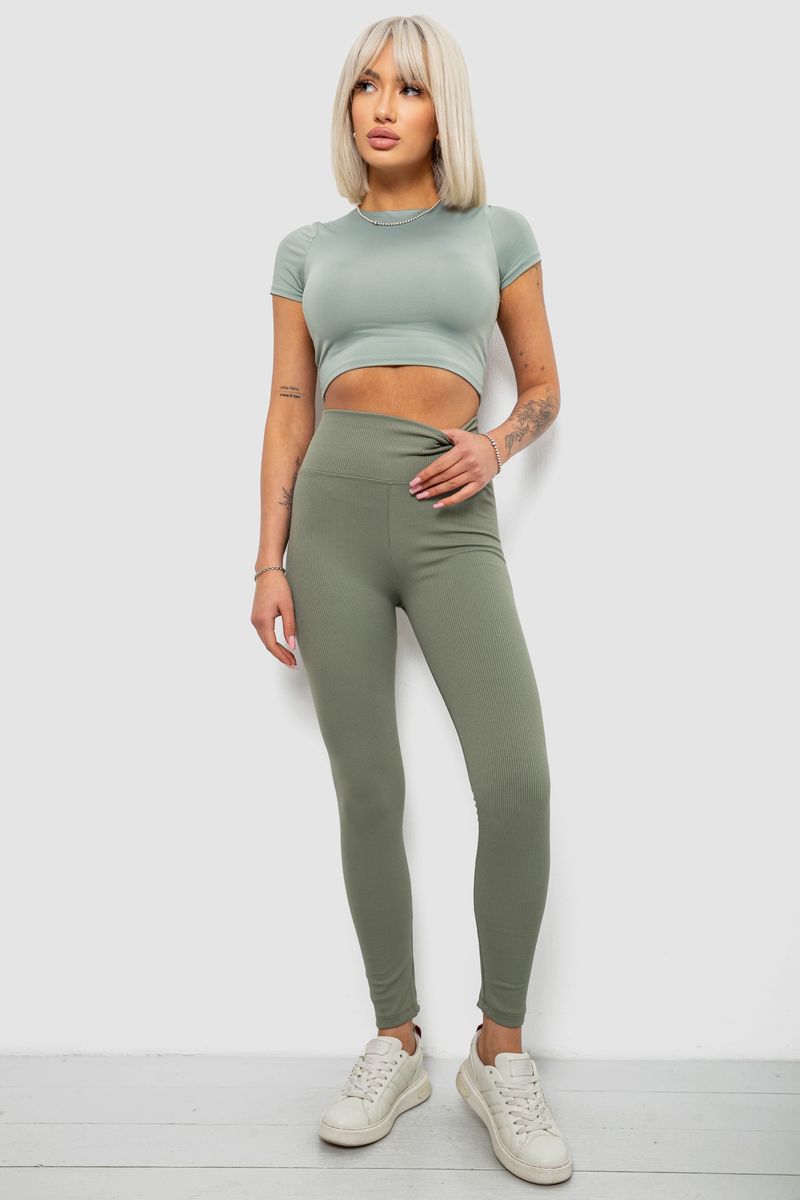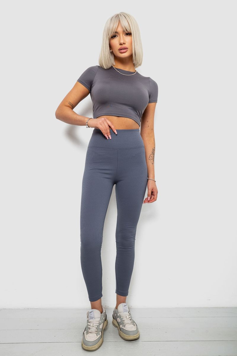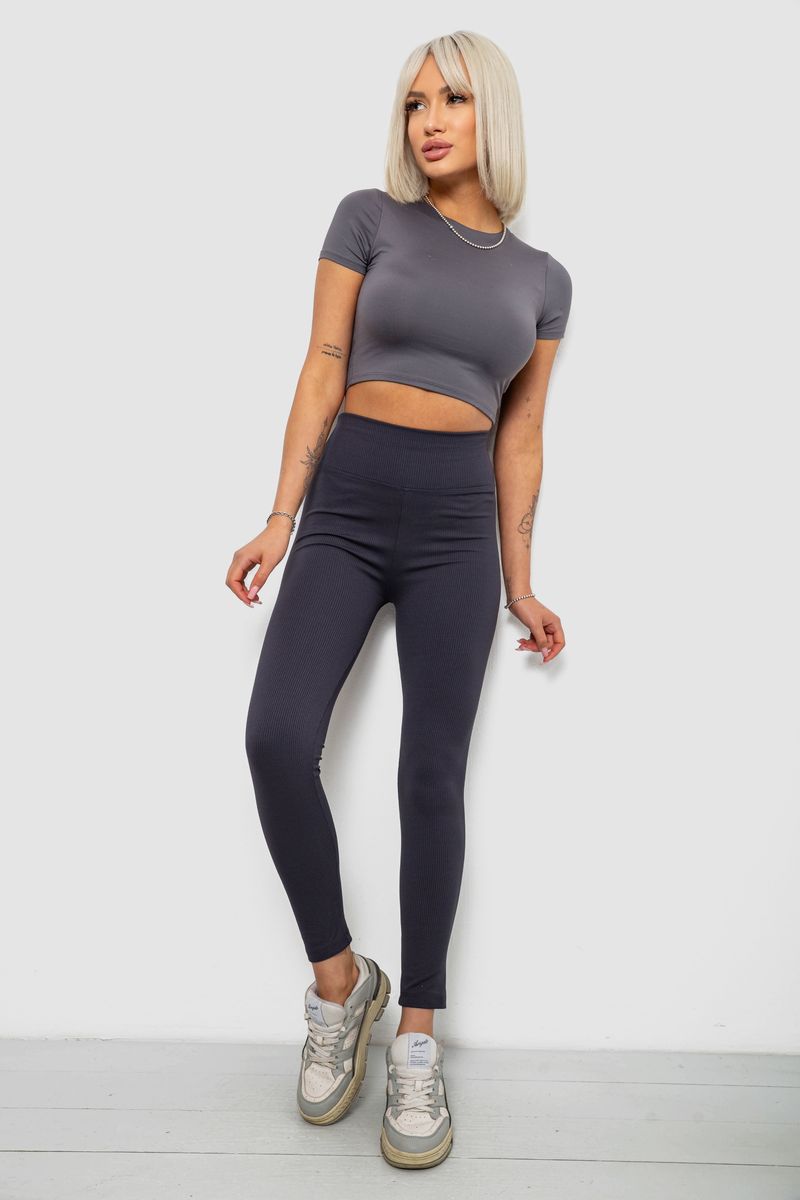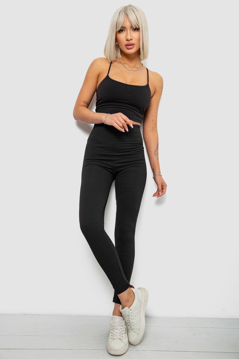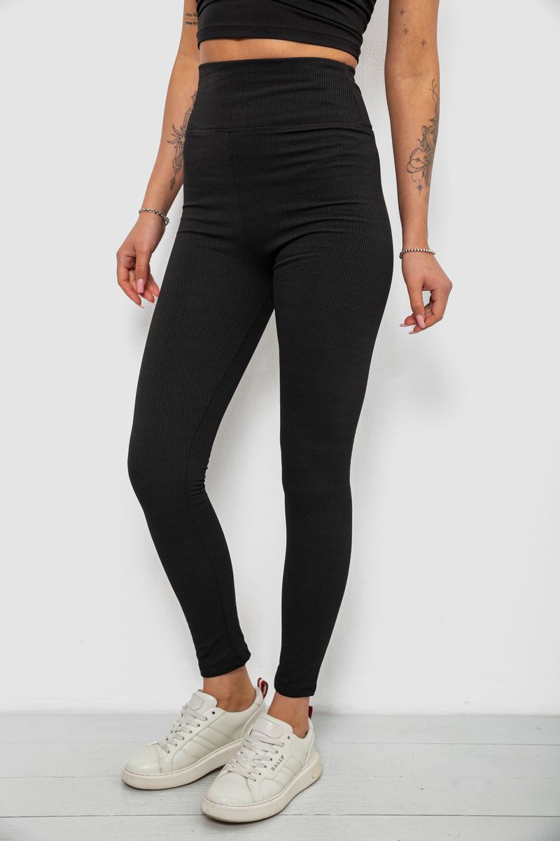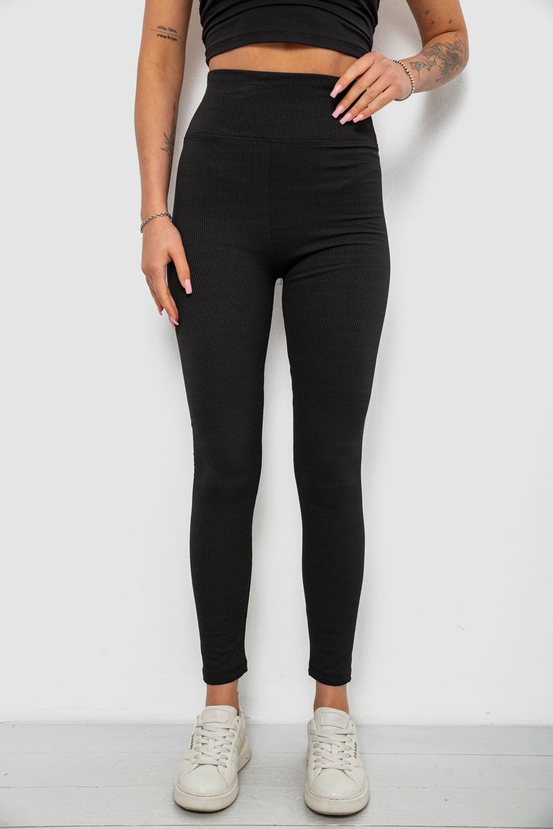 Лосини жіночі однотонні в рубчик, колір чорний, 214R0009
