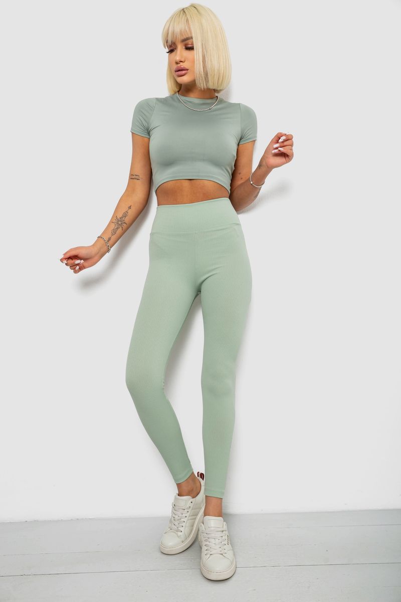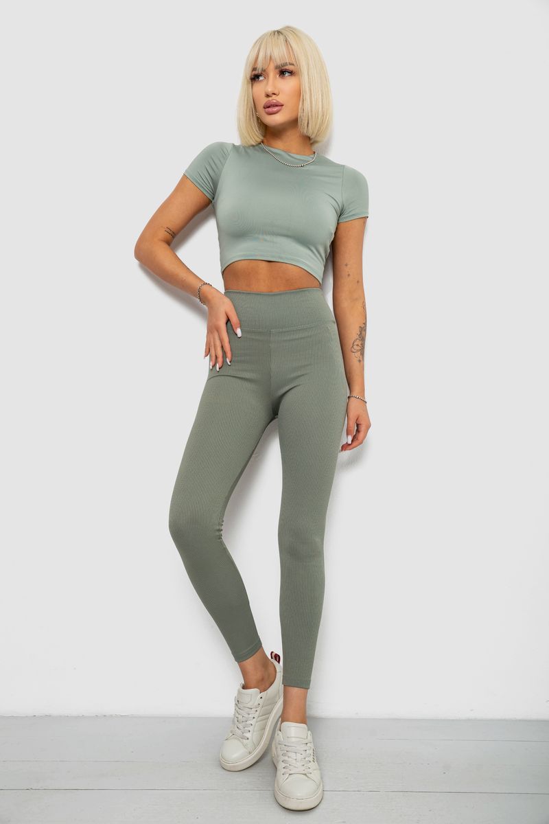 Лосини однотонні в рубчик, колір оливковий, 244R312-5