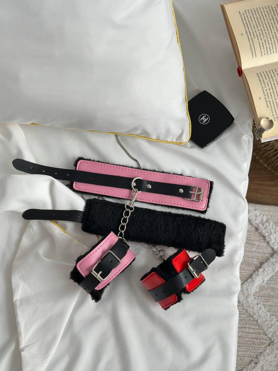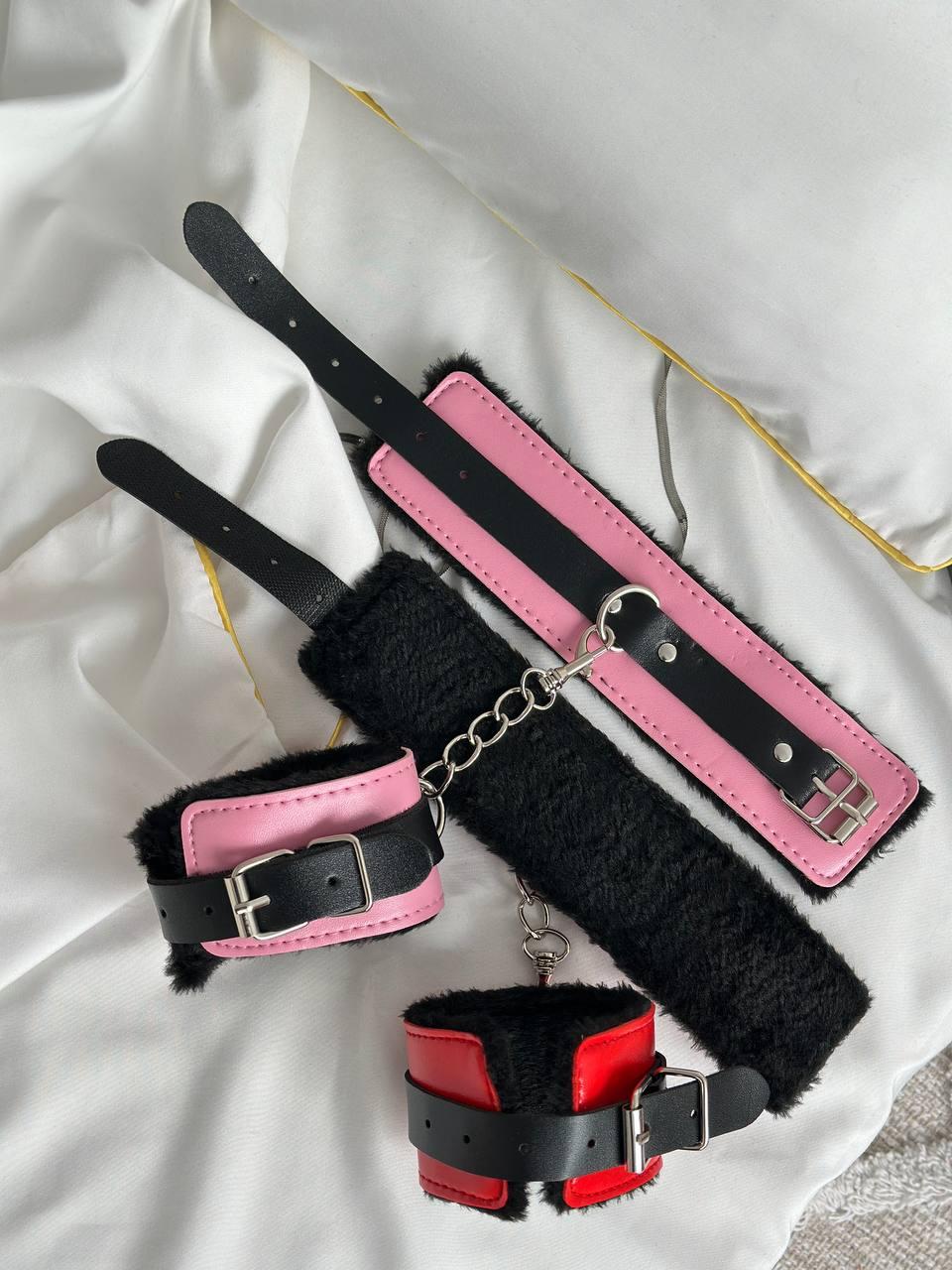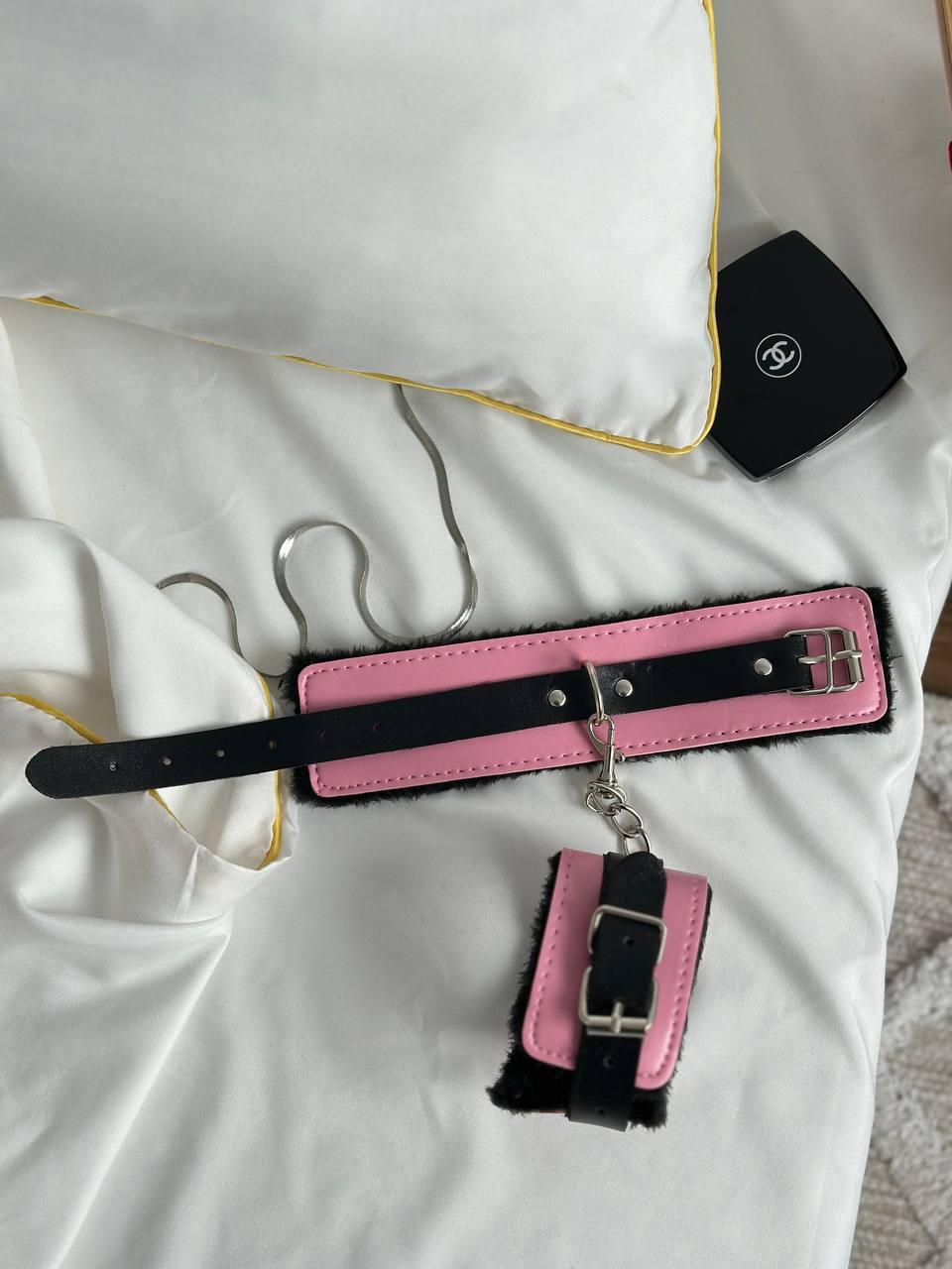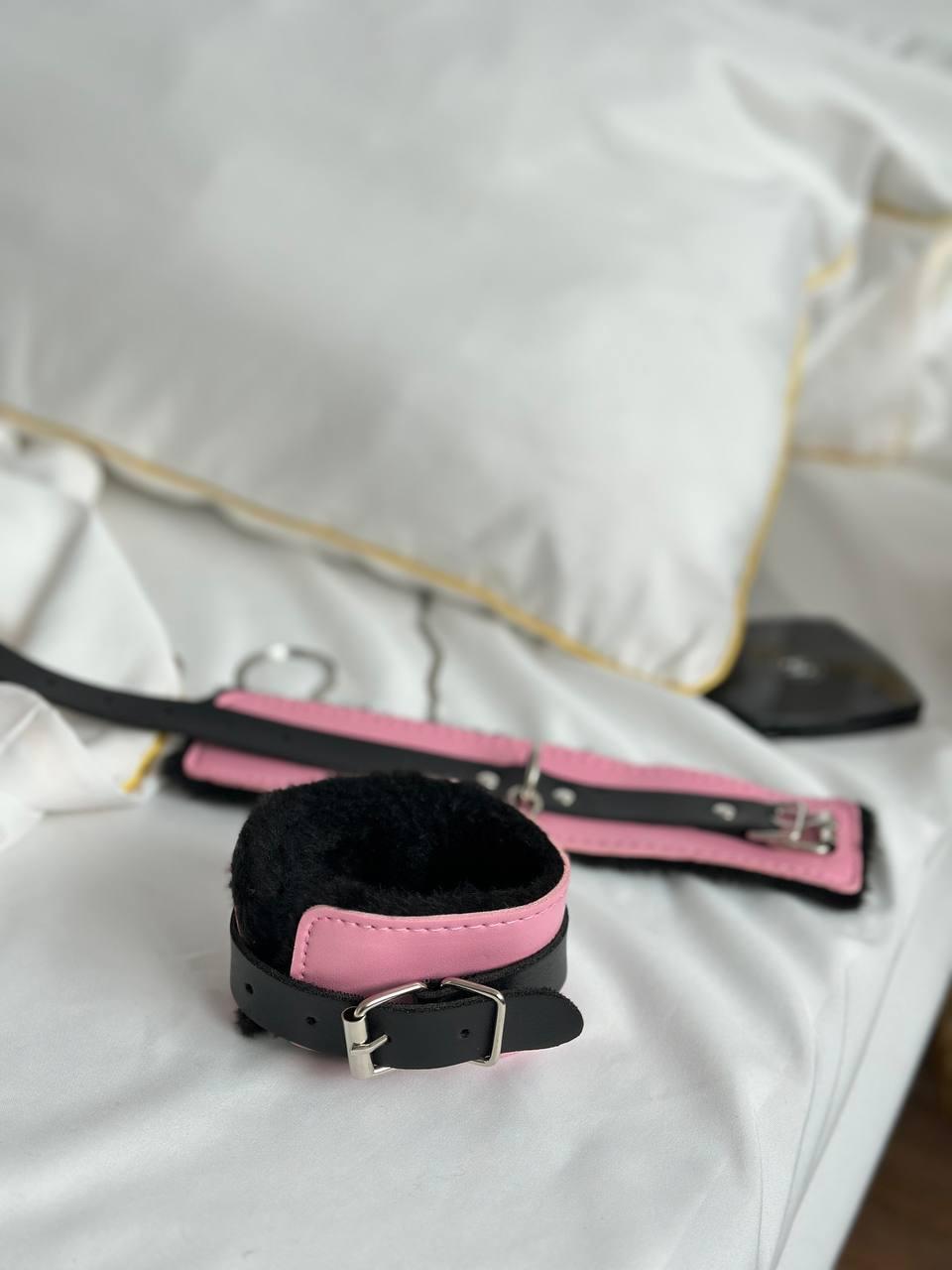 Хутряні браслети рожеві з чорними вставками для рольових ігор