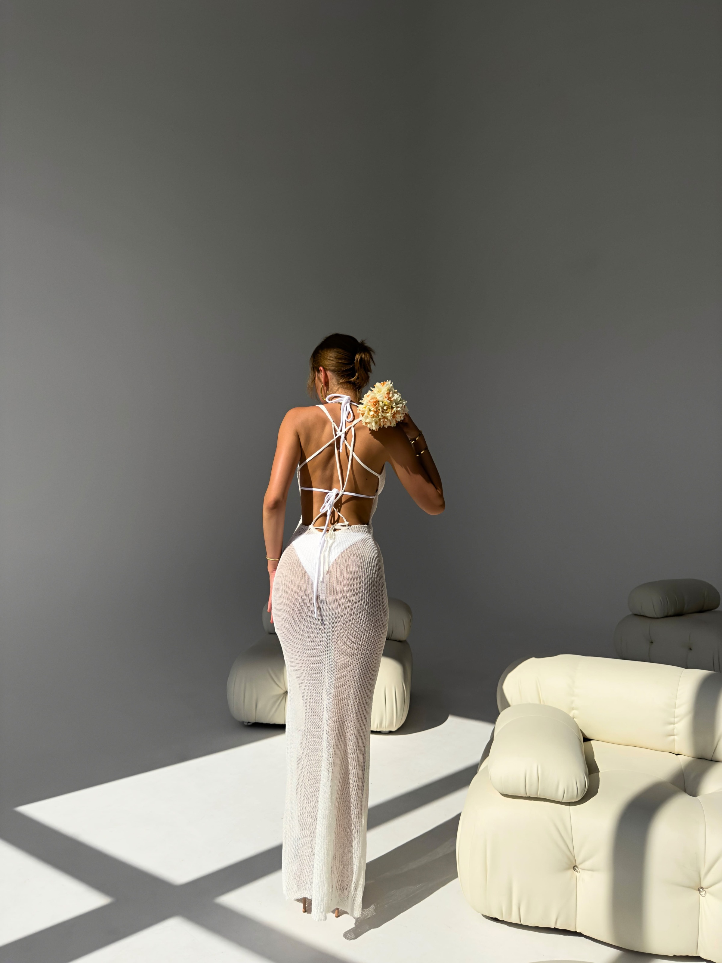 Легке в’язане плаття-сітка — ідеальний варіант для пляжного відпочинку. Напівпрозора фактура дозволяє вдало продемонструвати купальник, створюючи стильний та спокусливий образ.