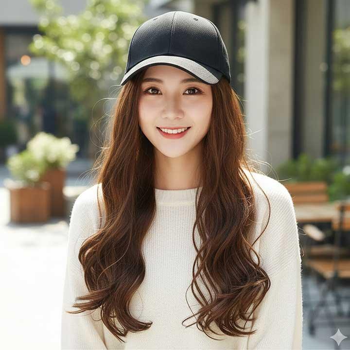 Перука кепка з хвилястим волоссям 60 см Шатенка