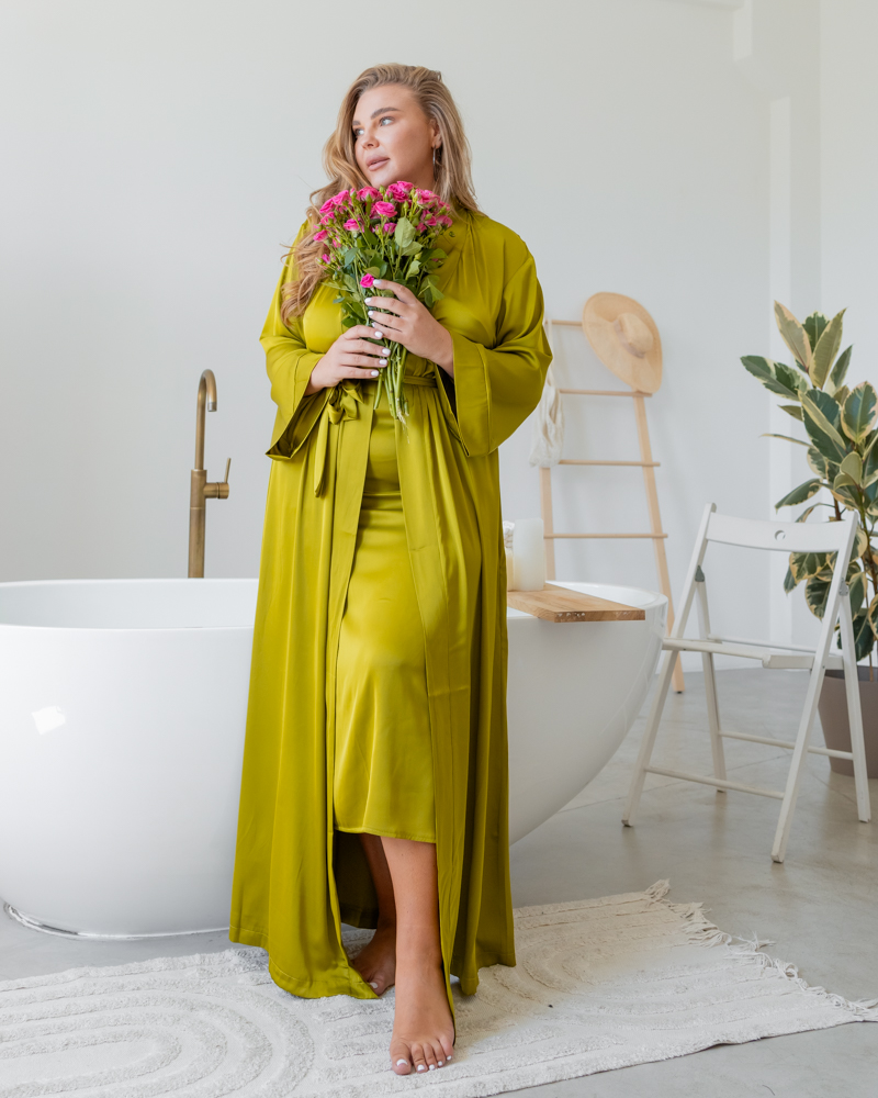 Нічна сорочка чудово підкреслює жіночу фігуру і може поєднуватися з халатом.