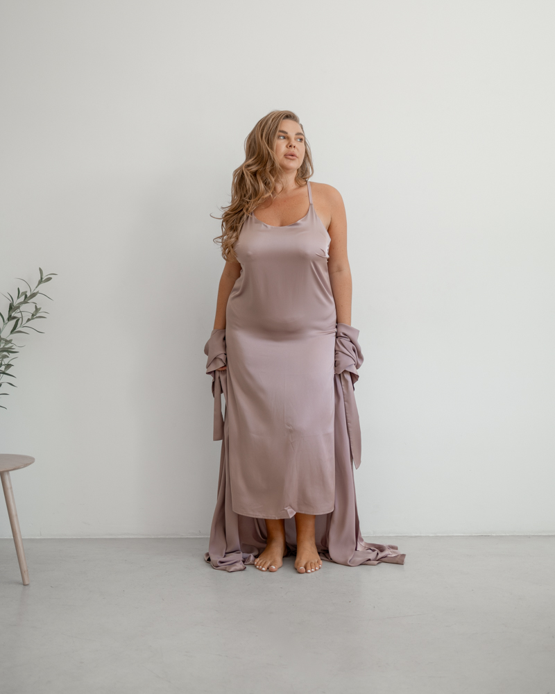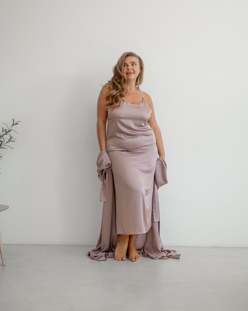 Нічна сорочка чудово підкреслює жіночу фігуру і може поєднуватися з халатом.