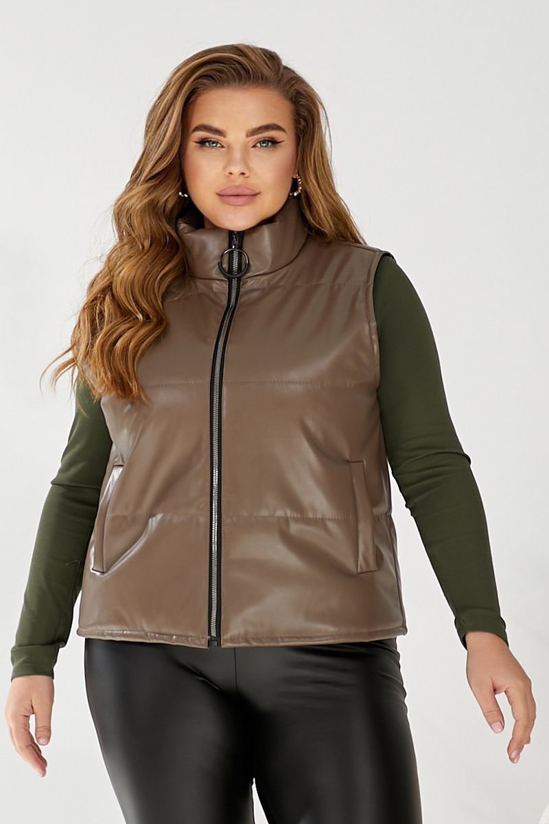 Жилет жіночий демісезонний екошкіра, колір коричневий, 257R65