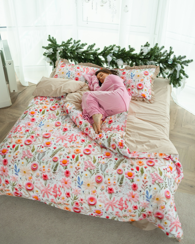 Комплект створює відчуття затишку та додає Вашій спальні естетики й тепла. Ідеальний вибір для комфортного та якісного сну щодня.