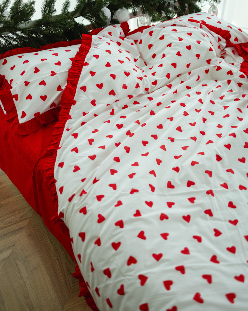 Постільний комплект з преміального ранфорсу в принт сердечки.