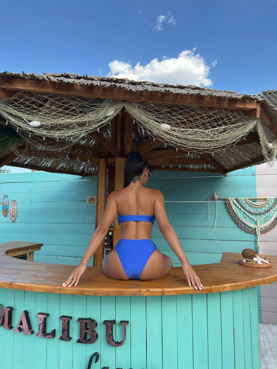 Бандо-топ зі зборкою гарно підкреслює бюст, а високі трусики з витонченим декором додають акцент на талію. Чашка має зйомні паралонові вкладиші.