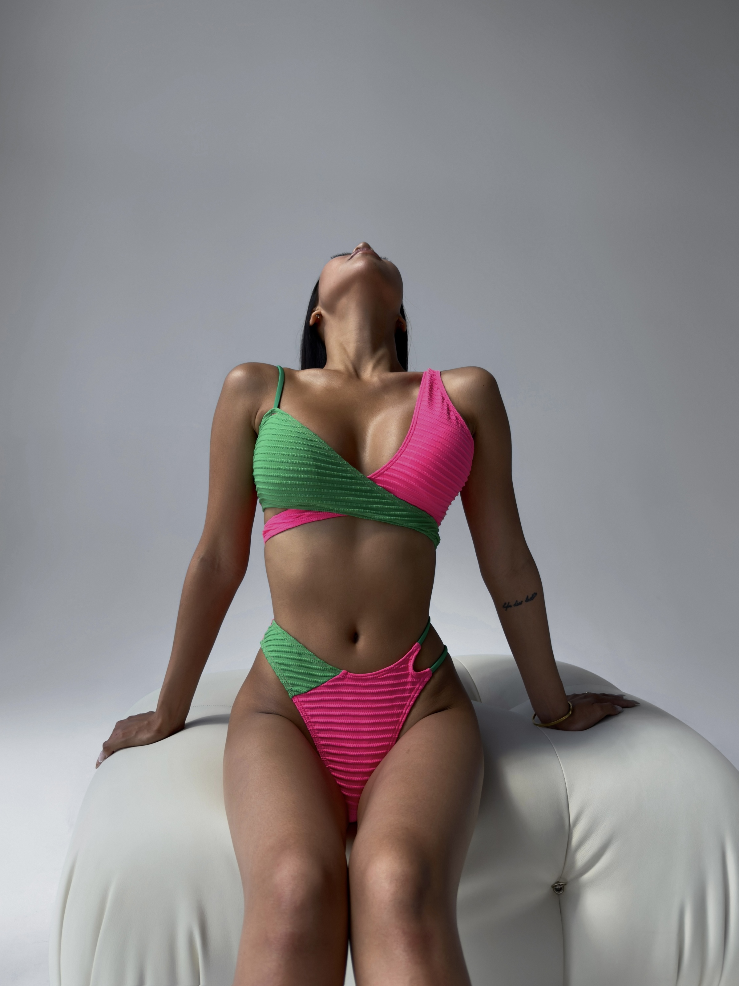 Бажаєш щось незвичайного? В нас є що тобі запропонувати❤️ Дуже вдала комбінація популярних кольорів, незвичайний пошив топа. Є зйомні поролонові вкладиші та підклад.