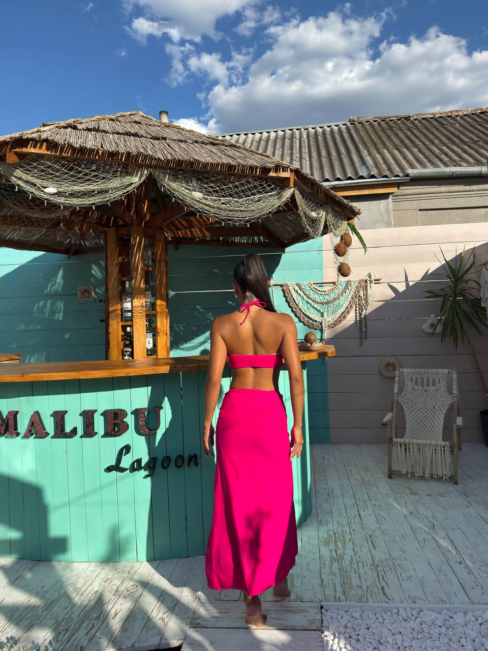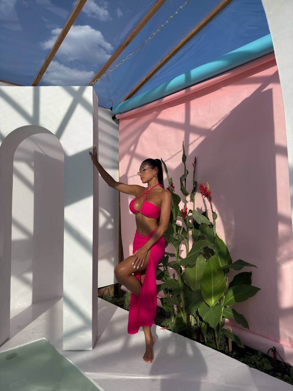 Цей комплект ідеально підходить для пляжного відпочинку. Завдяки мінімалістичному дизайну та елегантному крою, образ виглядає дуже жіночно та вишукано.