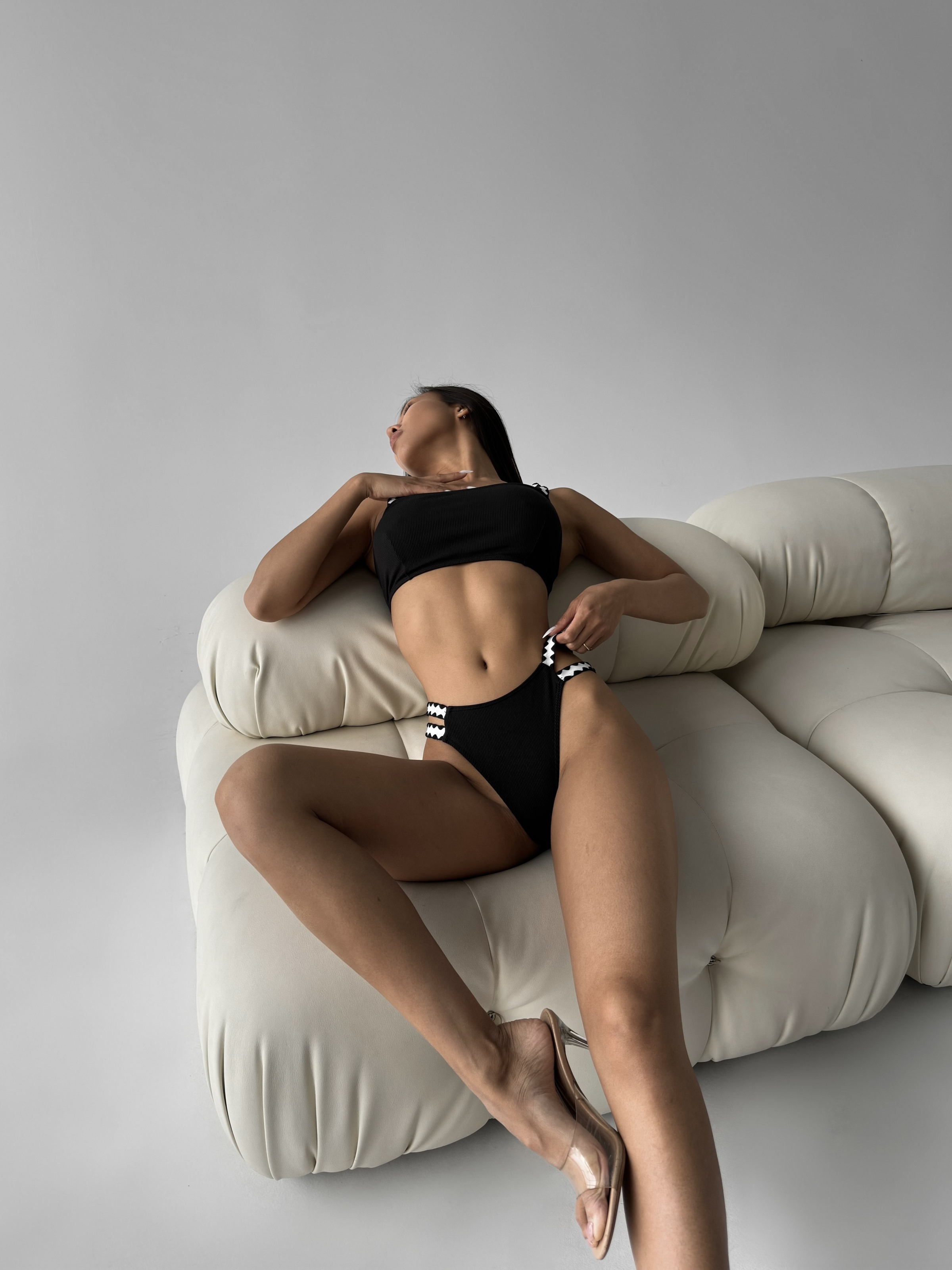 Купальник жіночий з білими шлейками, чорний : Колір - Чорний, Розмір - S (арт. 2766/38-S)