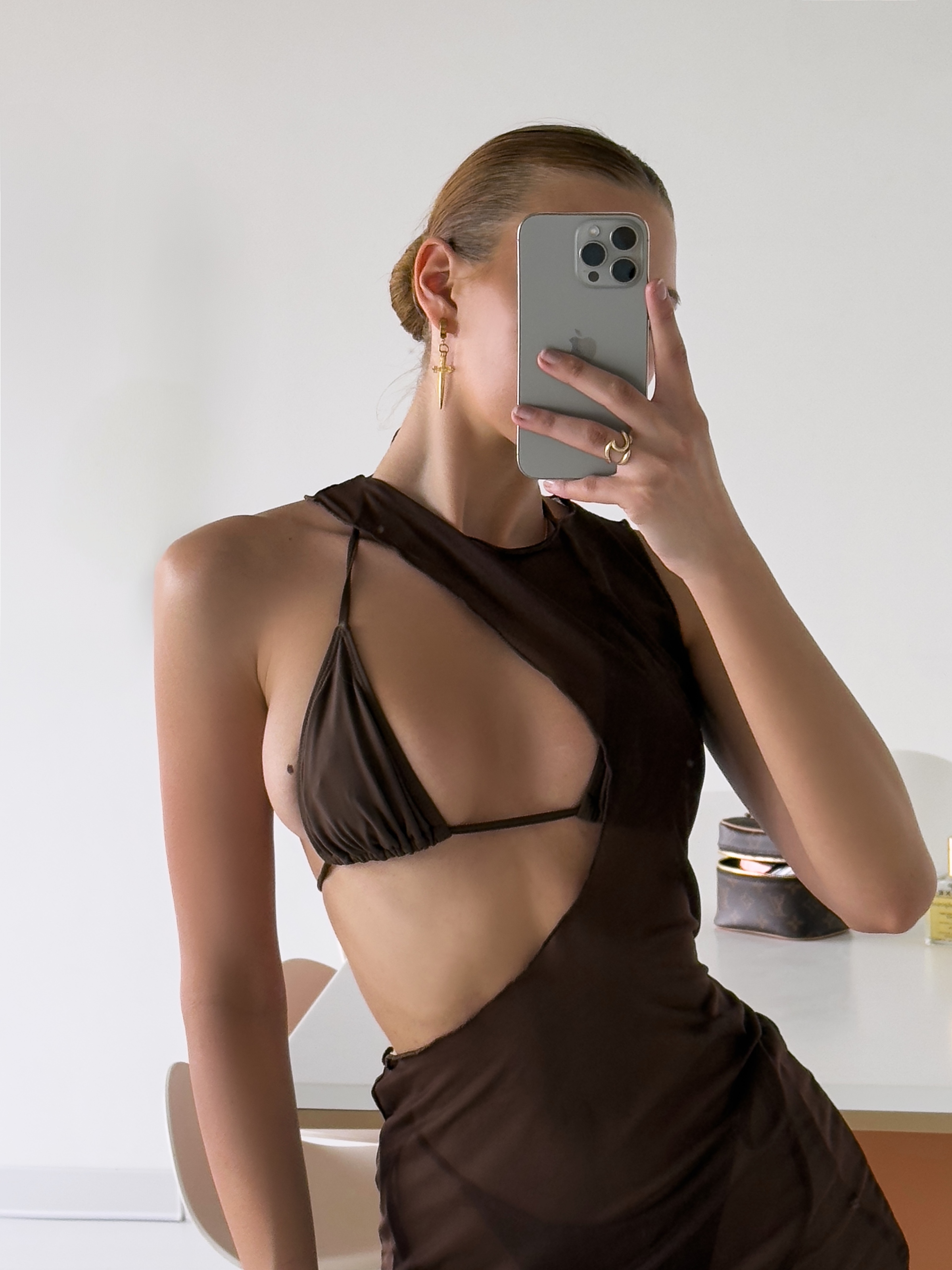 Жіночий купальник трикутник з сукнею, коричневий : Колір - Коричневий, Розмір - S (арт. 2886/102-S)