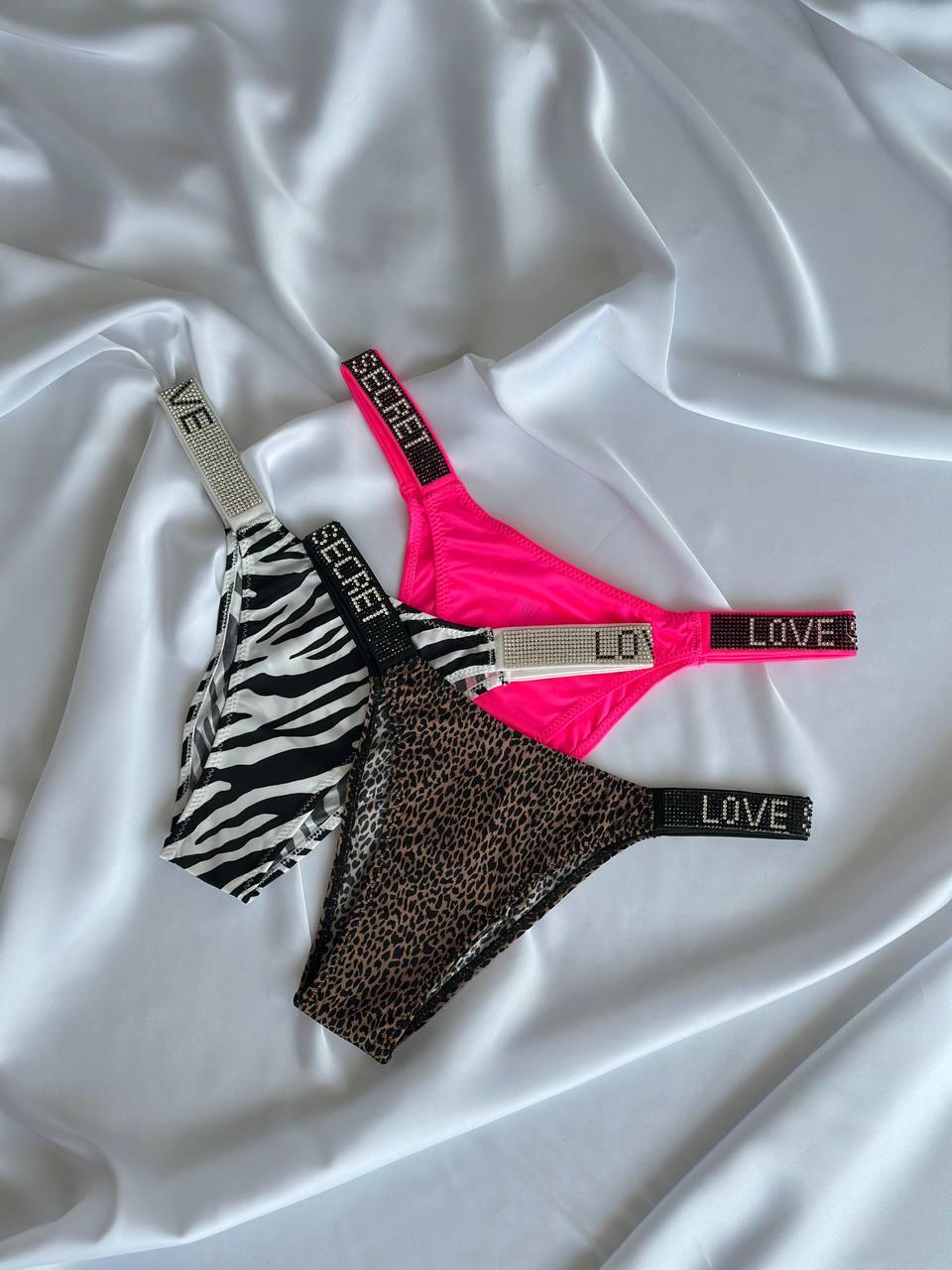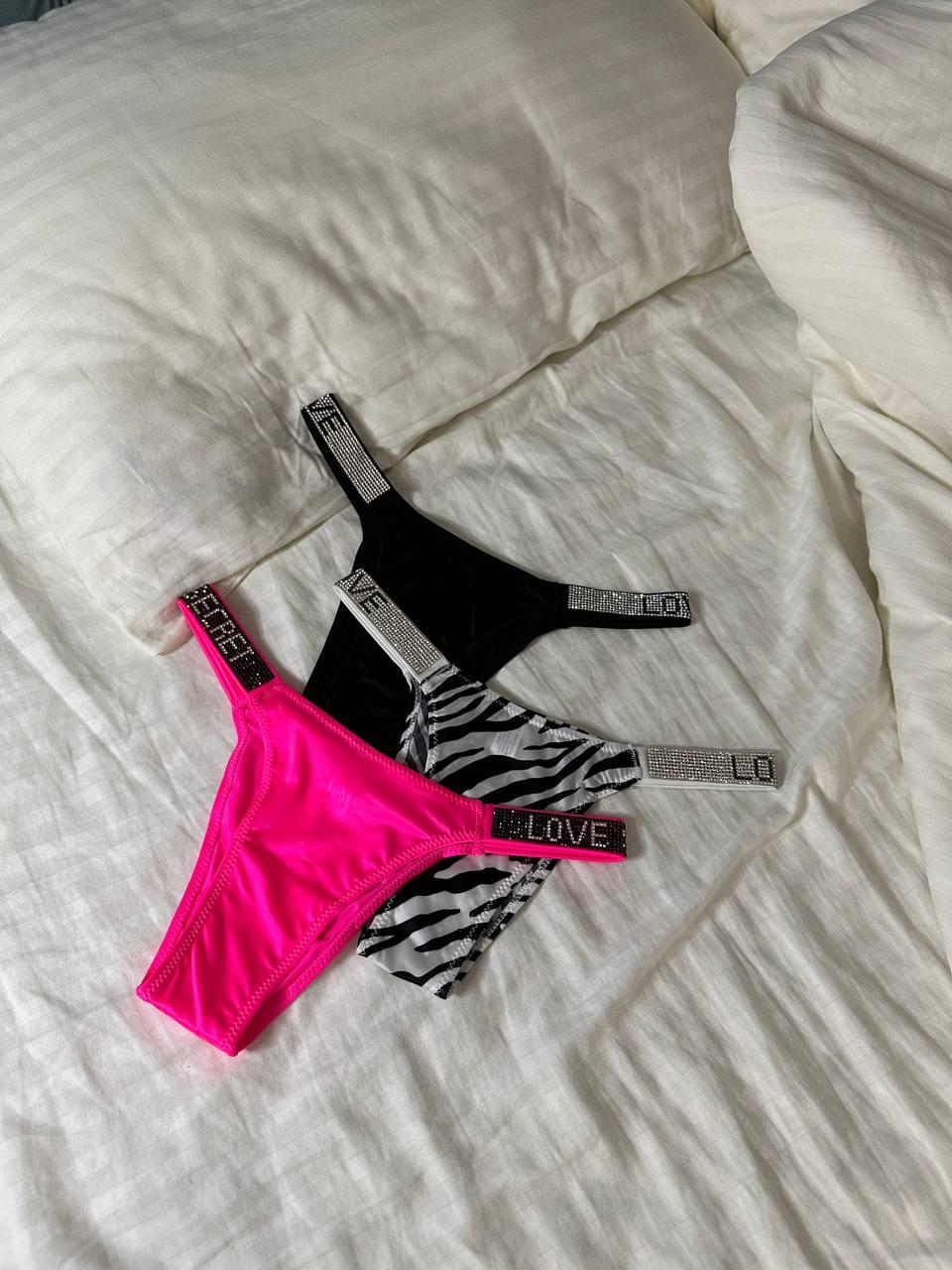 Сет з 3-х трусиків DO2498 (Чорні, рожеві, зебра)