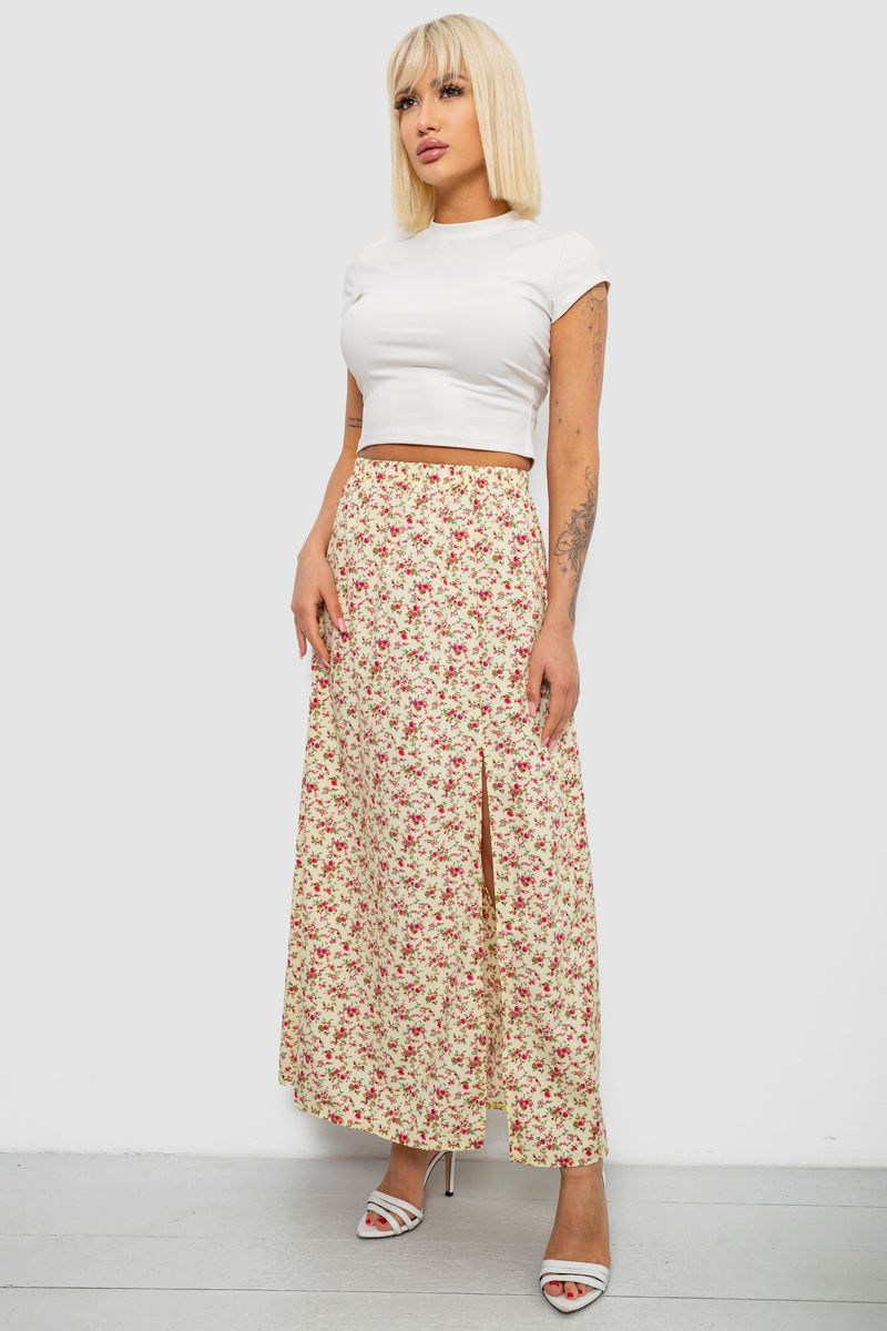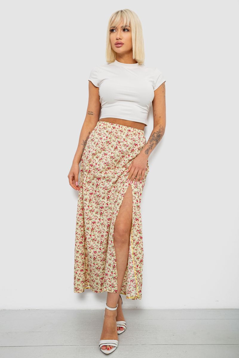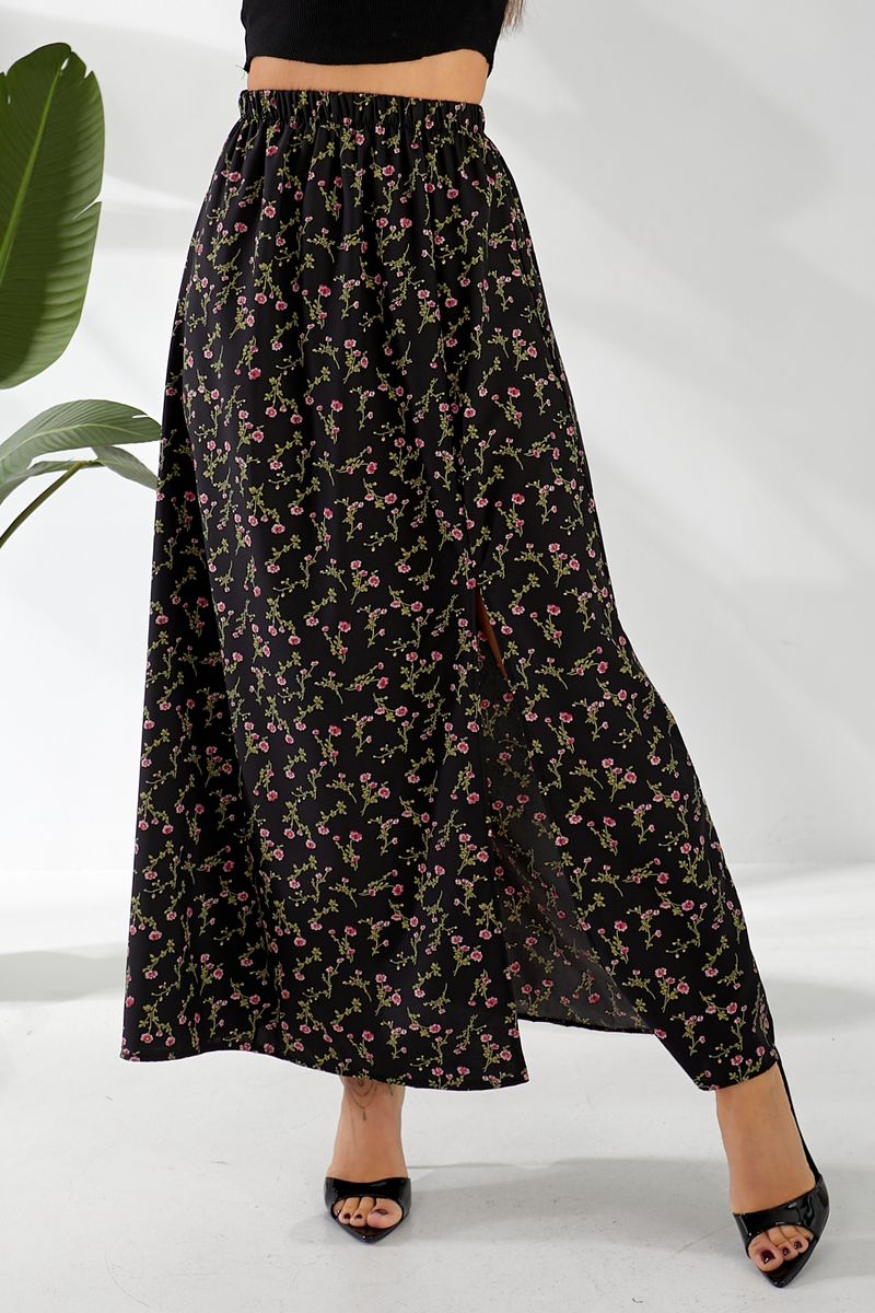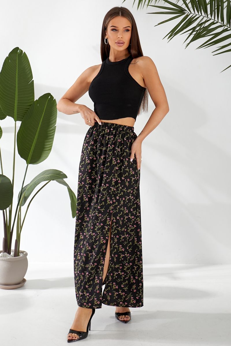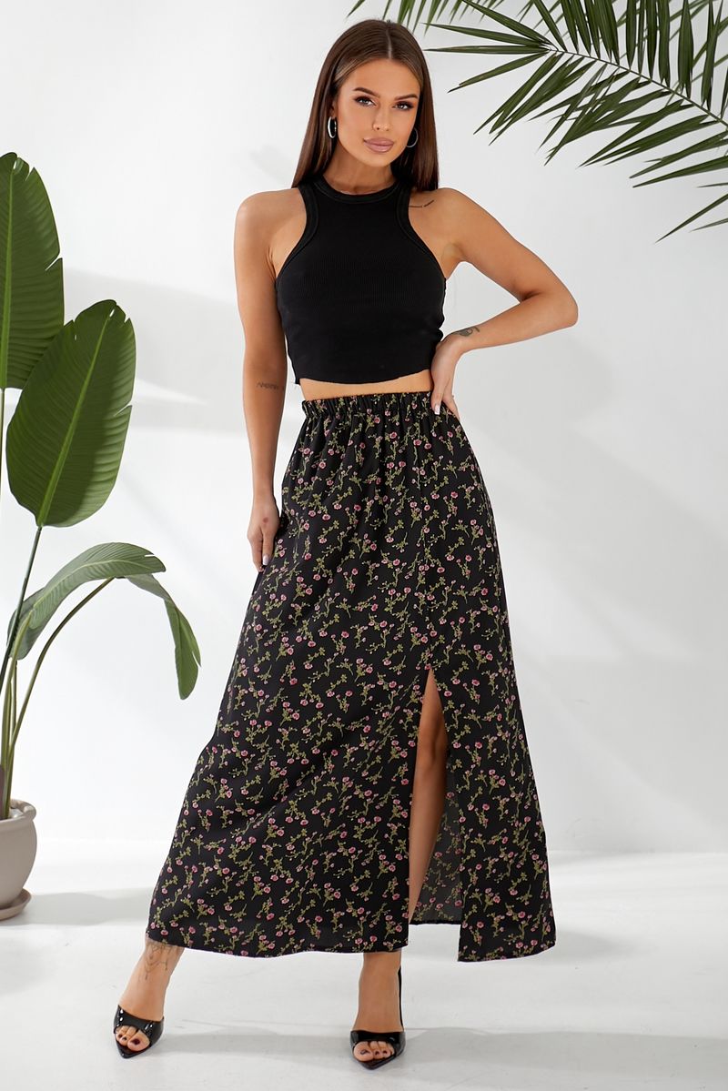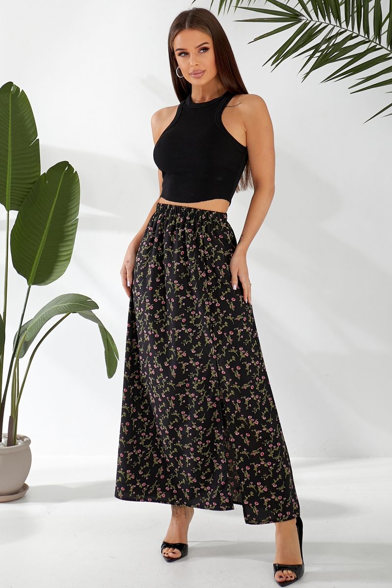Спідниця софт із квітковим принтом, колір чорний, 257R11