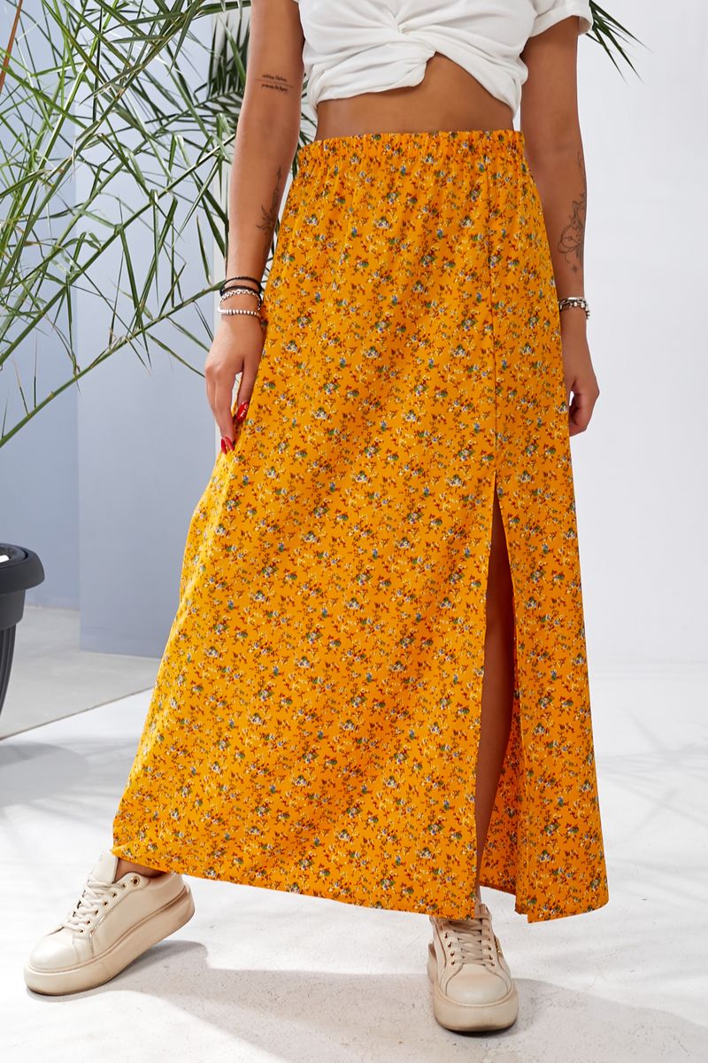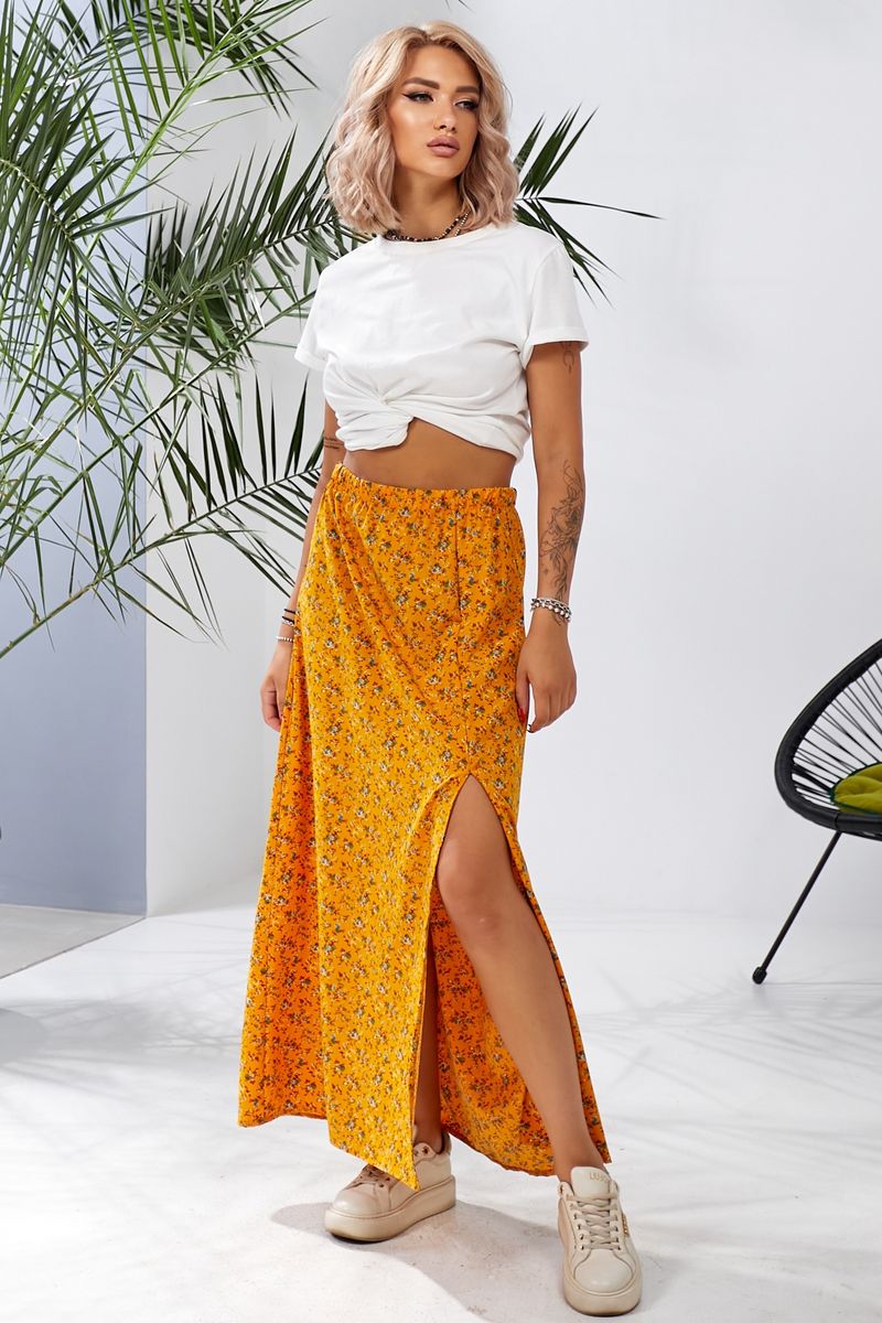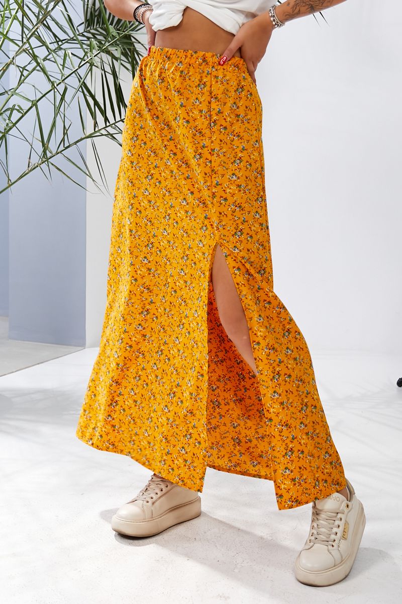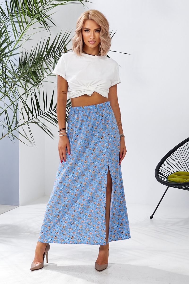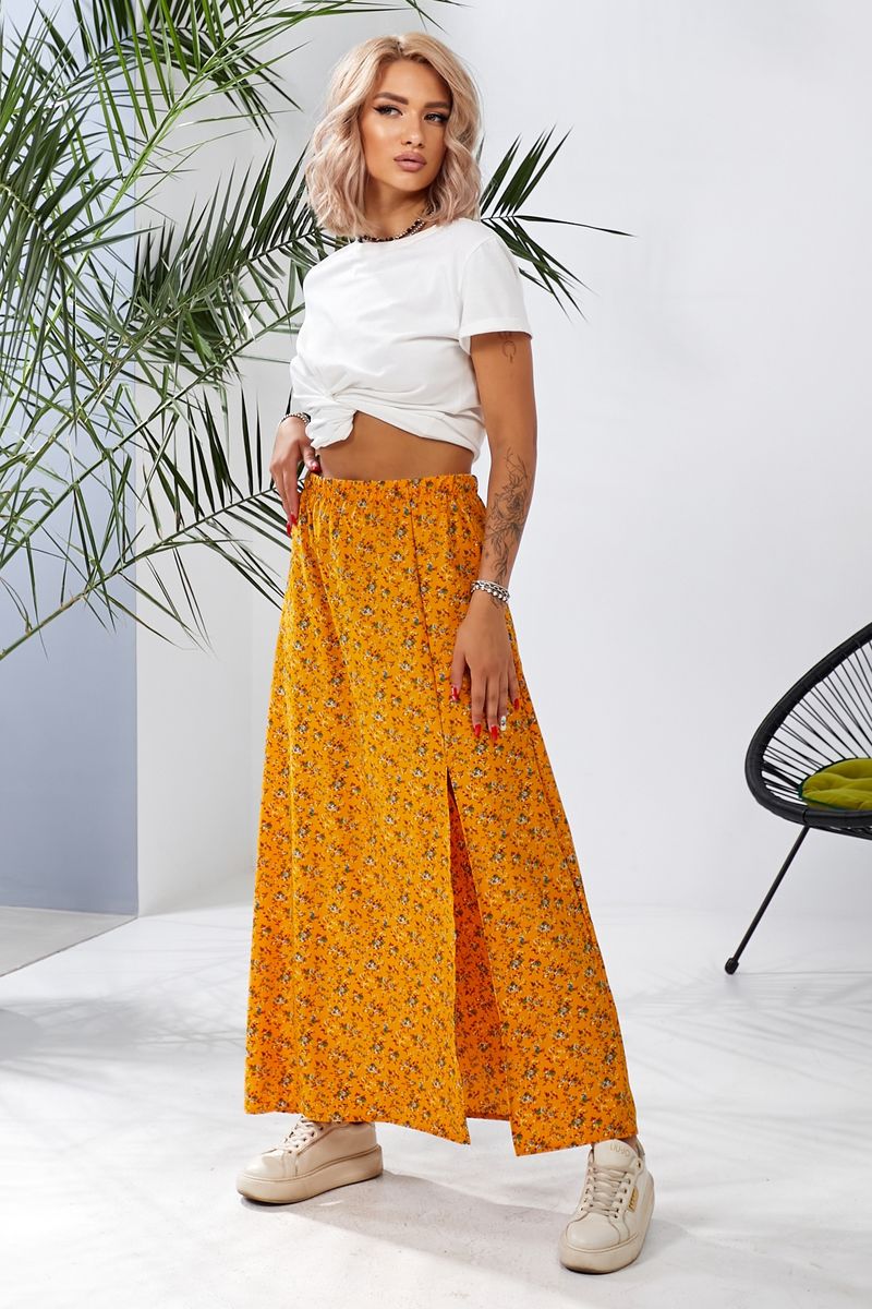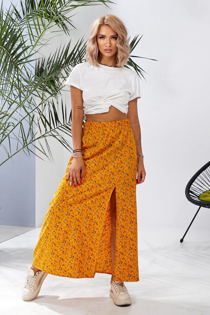 Спідниця софт із квітковим принтом, колір чорний, 257R11