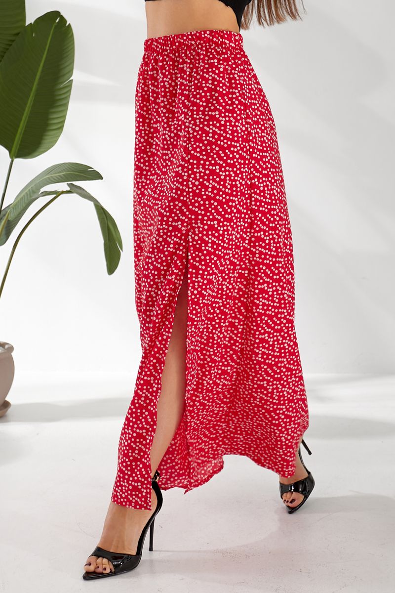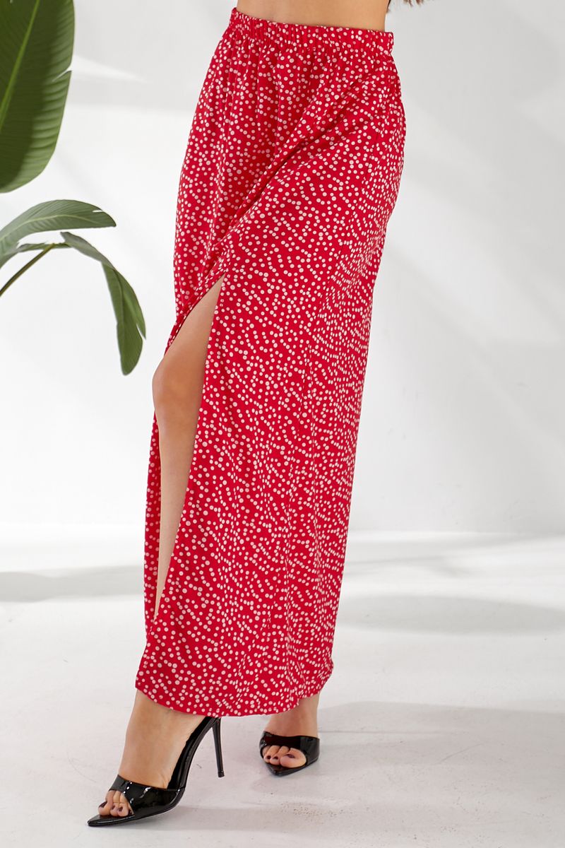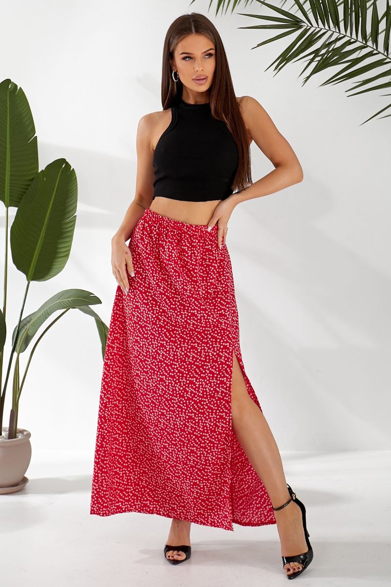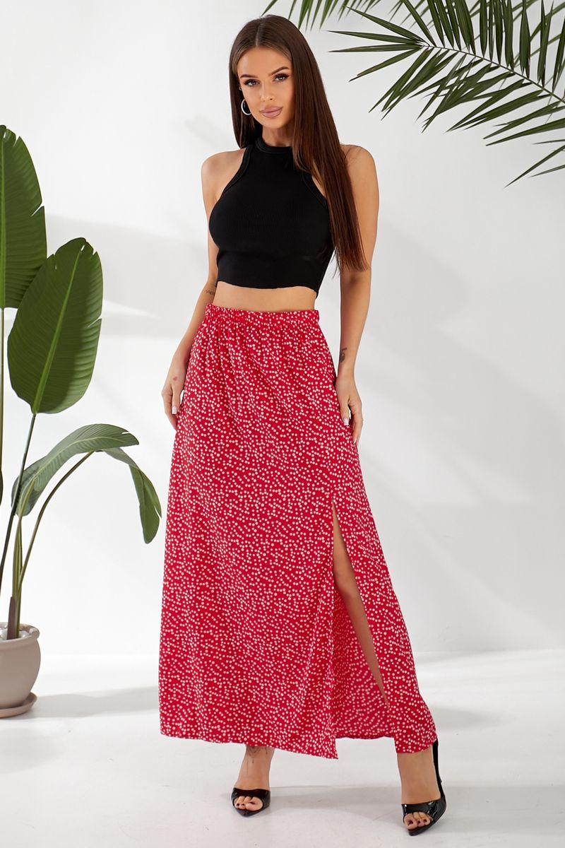 Спідниця софт однотонна в горошок, колір червоний, 257R11-1
