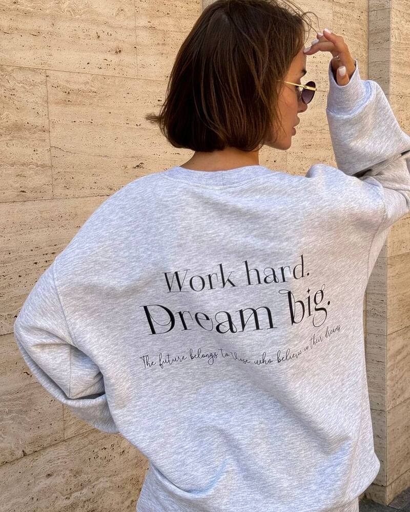 Комплект: вільний світшот із манжетами та прямого крою штани на резинці зі шнурком та кишенями.