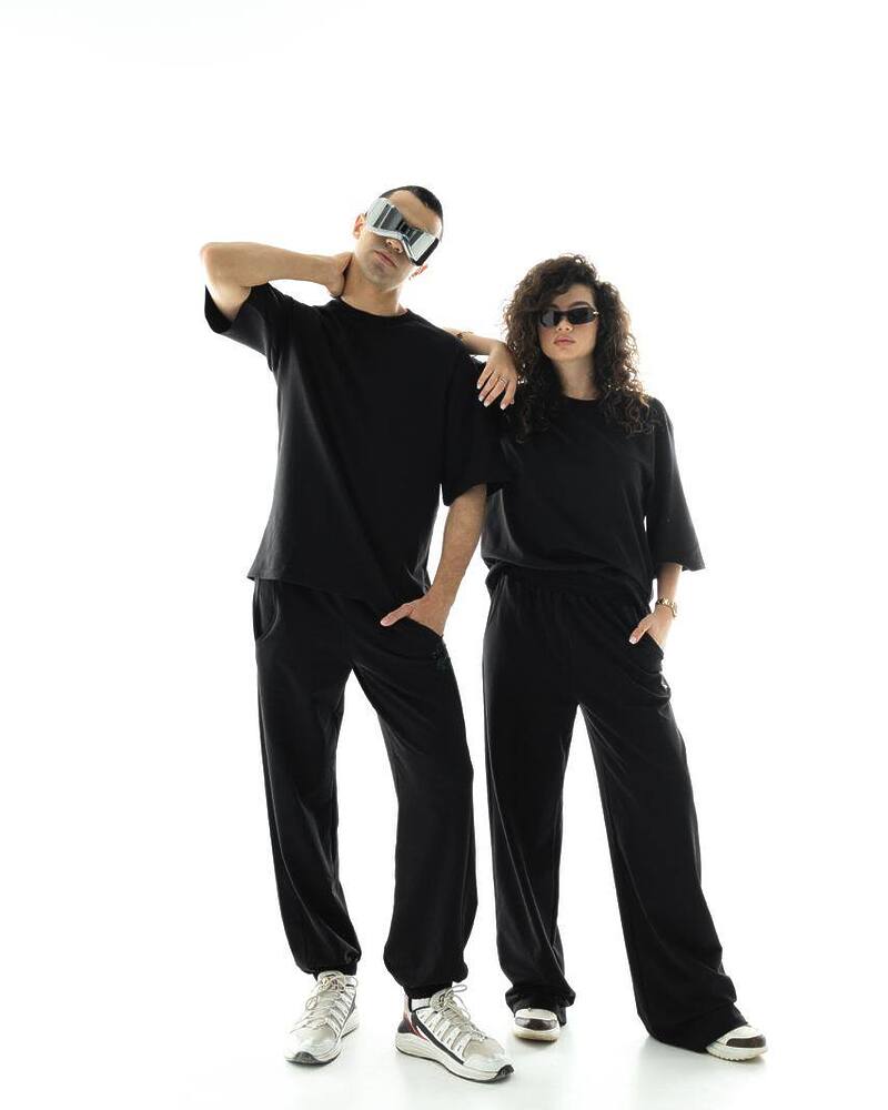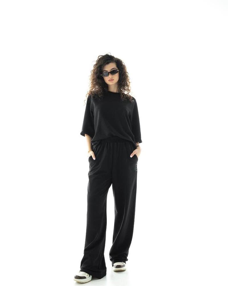 Спортивний костюм-двійка "Кука" (футболка+штани) двонитка петля Чорний