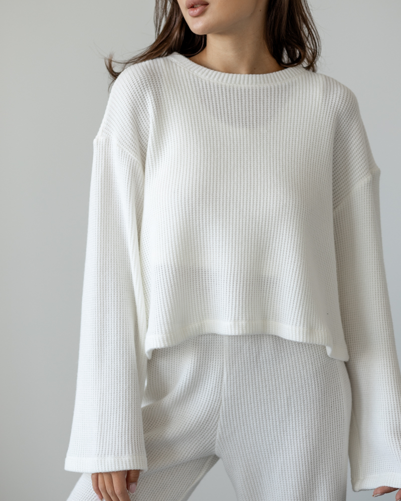 В'язаний костюм-трійка (топ+кофта+штани) "Monica" Білий
