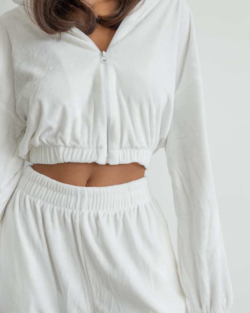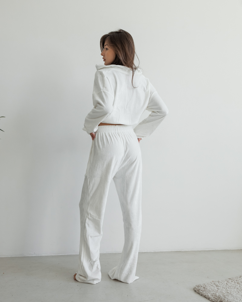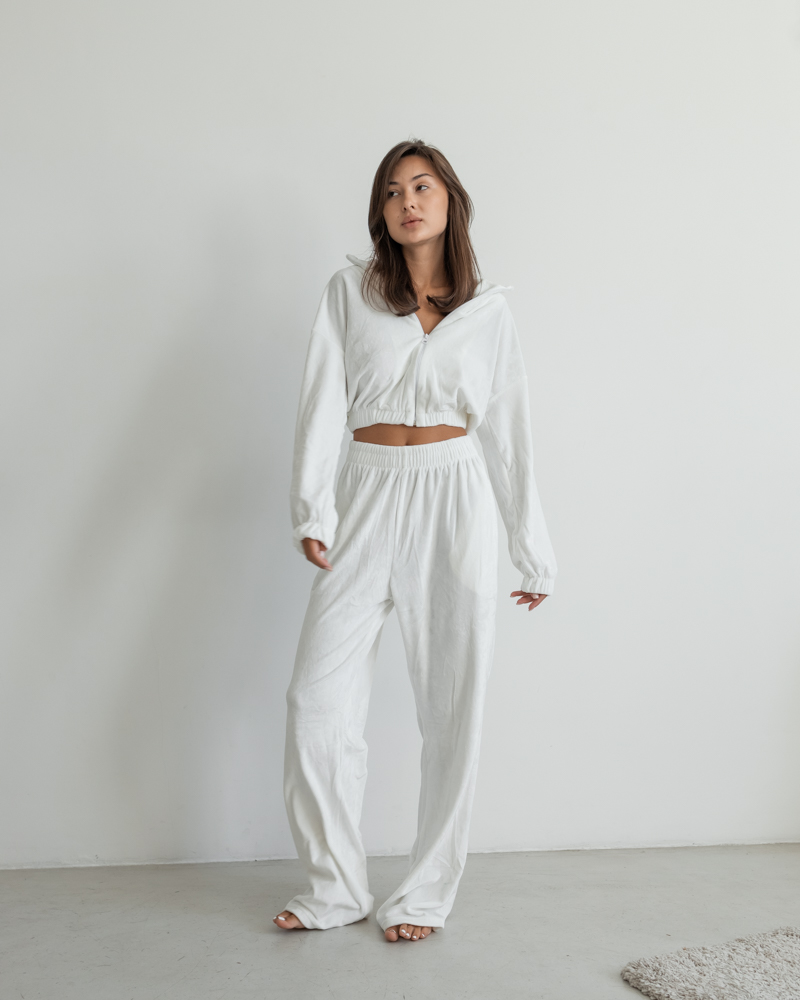 Комплект: укорочена кофтина на блискавці та резинці, штани-палаццо із високою посадкою на резинці.
