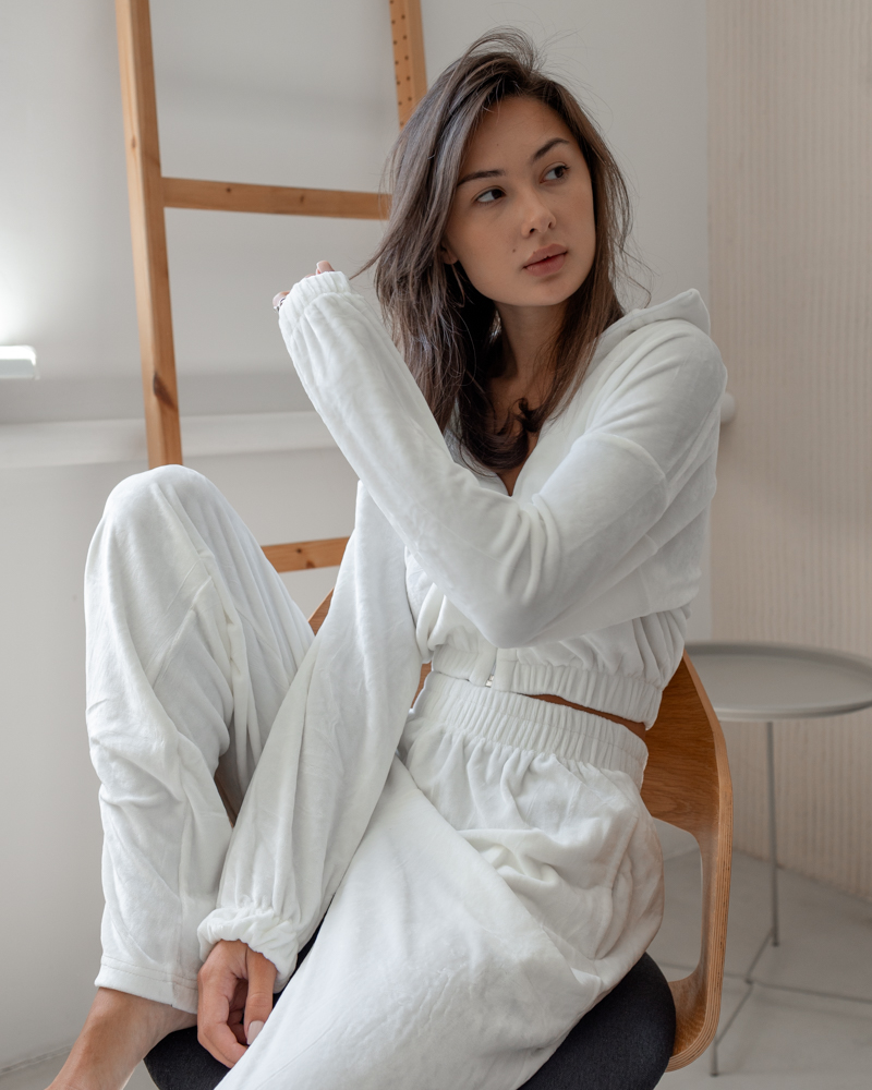 Стильний та зручний костюм із тканини велюр преміум-класу на бавовняній основі. Тканина м'яка, приємна, не утворює катишок, після багаторазового прання зберігає чудовий вигляд, не линяє.