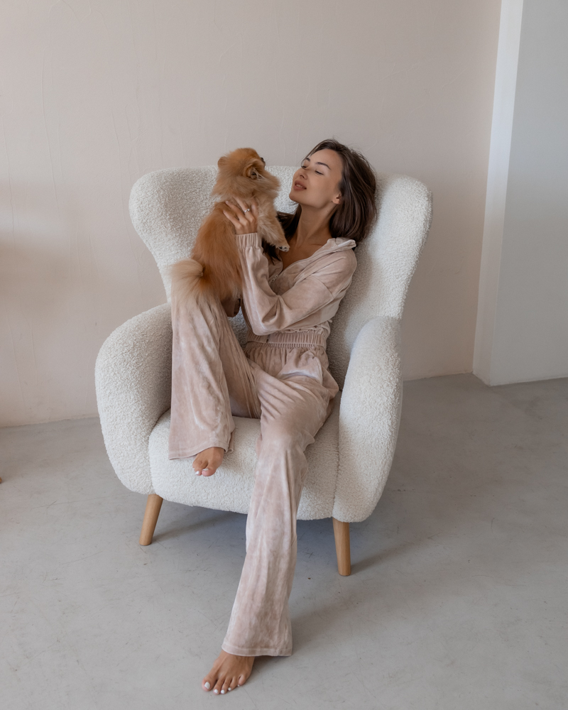 Стильний та зручний костюм із тканини велюр преміум-класу на бавовняній основі. Тканина м'яка, приємна, не утворює катишок, після багаторазового прання зберігає чудовий вигляд, не линяє.