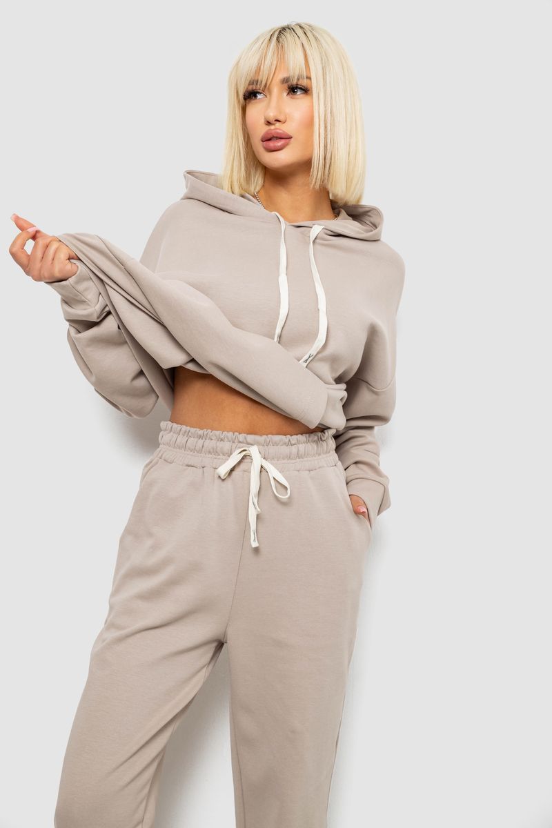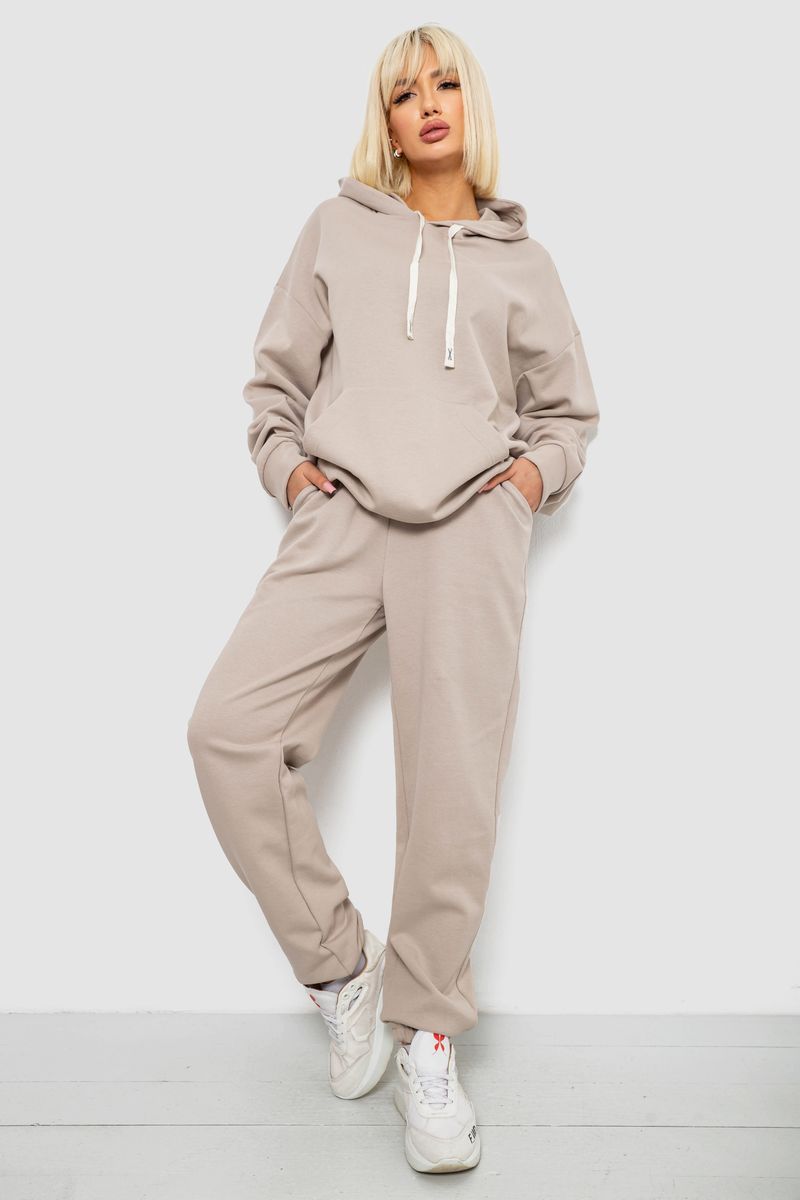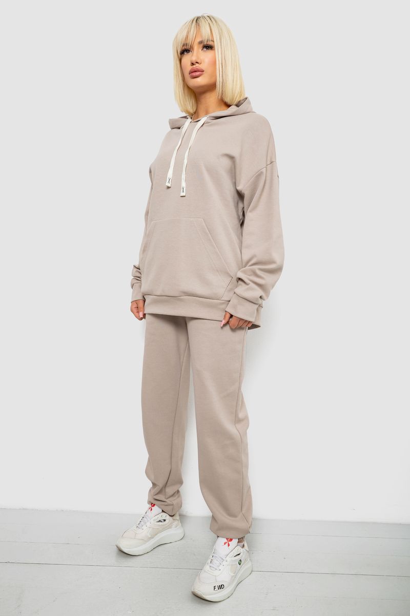 Спортивний костюм жіночий однотонний, колір бежевий, 244R1070AG