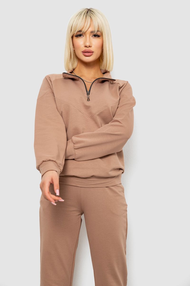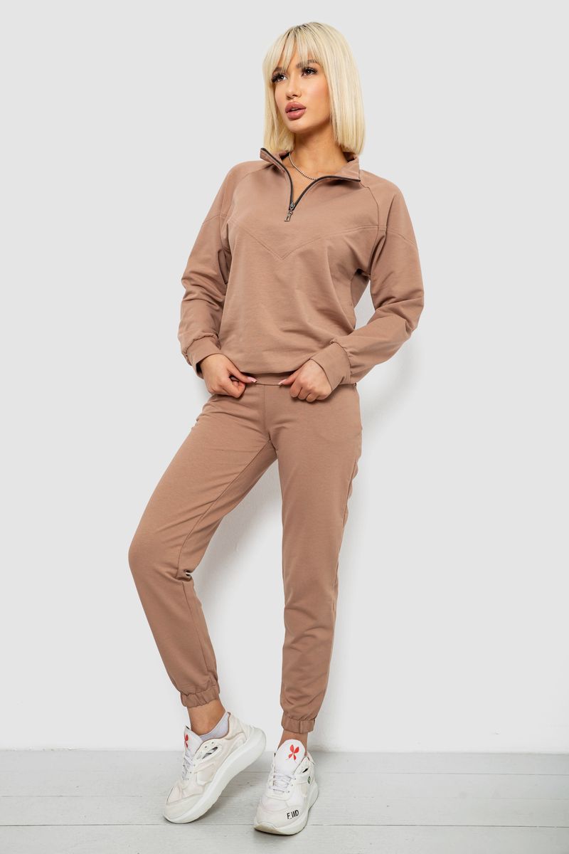 Спортивний костюм жіночий однотонний, колір мокко, 244R1069AG