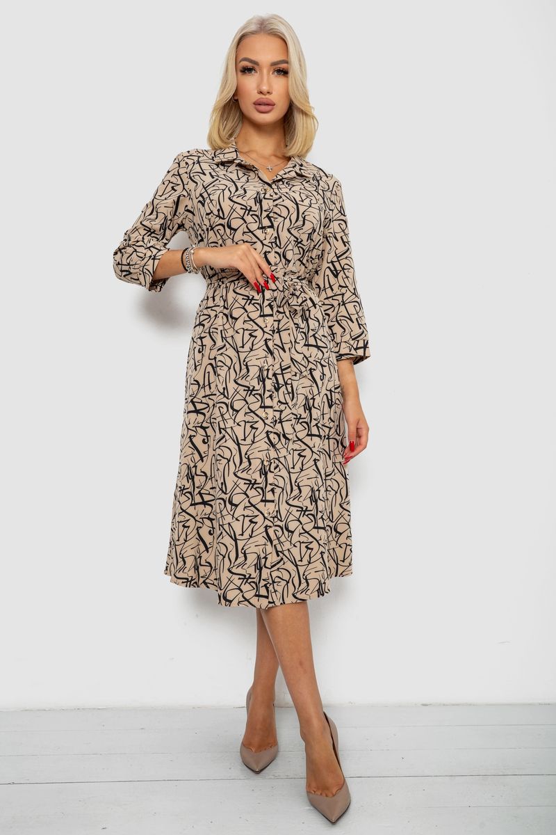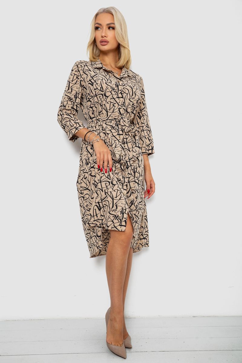 Сукня софт на ґудзиках з принтом, колір мокко, 230R117