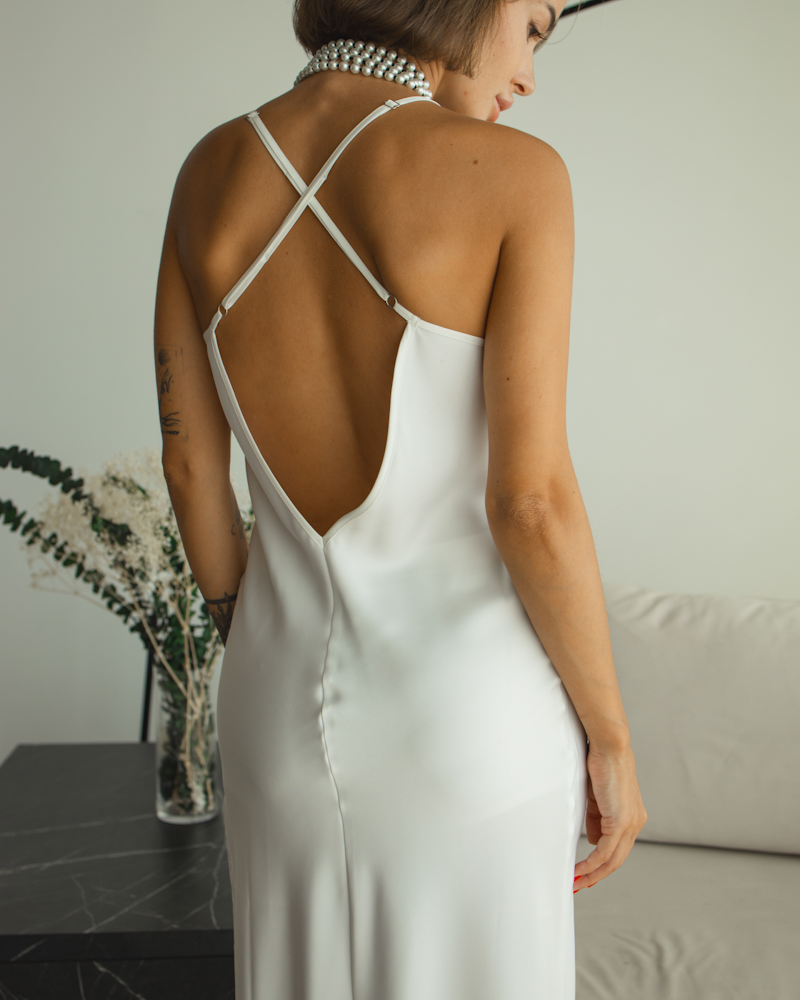 Ніжна сукня-maxi із королівського сатину з відкритою спиною.
