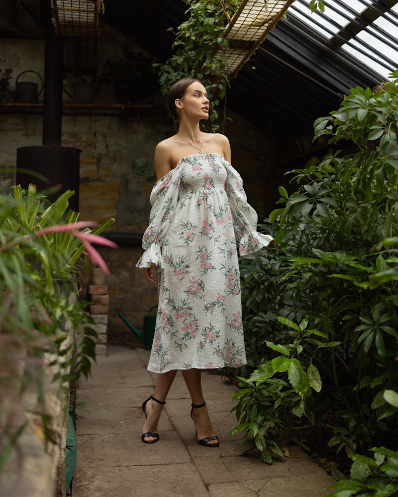 Повітряна та легка сукня міді з натуральної бавовни.