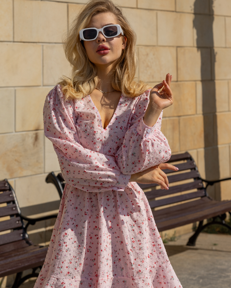 Модель із рукавами-ліхтариками на манжетах, талія прикрашена зав'язкою та резинкою, що чудово підкреслює фігуру. У такій сукні Ви відчуєте себе грайливою та неймовірно звабливою!