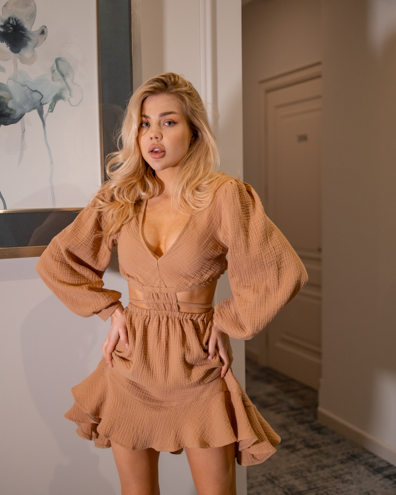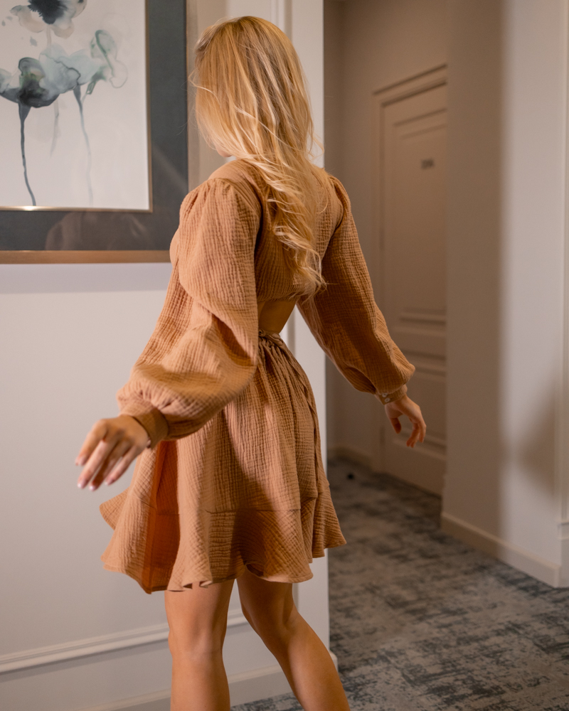 Чарівна сукня-міні із тканини муслін, яка така легка та невідчутна на тілі. Чудово пропускає повітря та дуже приємна на дотик.