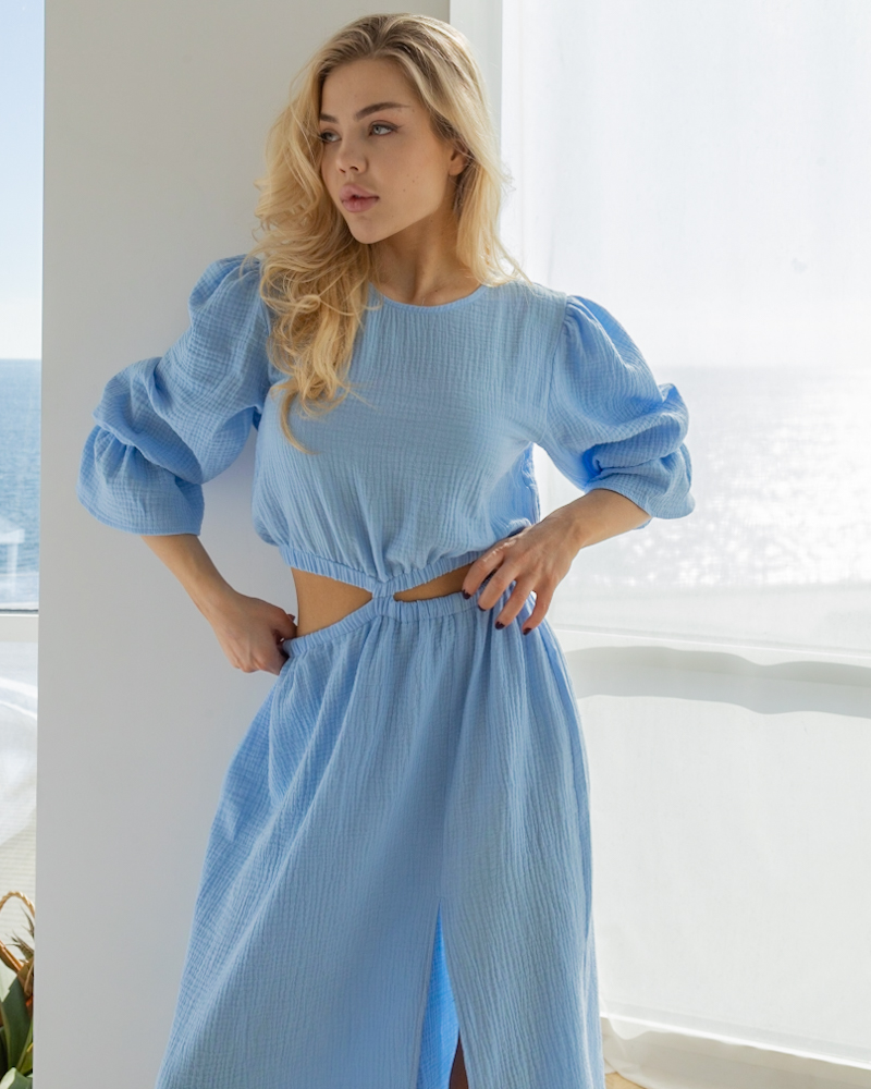 Невагомий комплект-сукня із тканини муслін, яка така легка та невідчутна на тілі. Чудово пропускає повітря та дуже приємна на дотик.